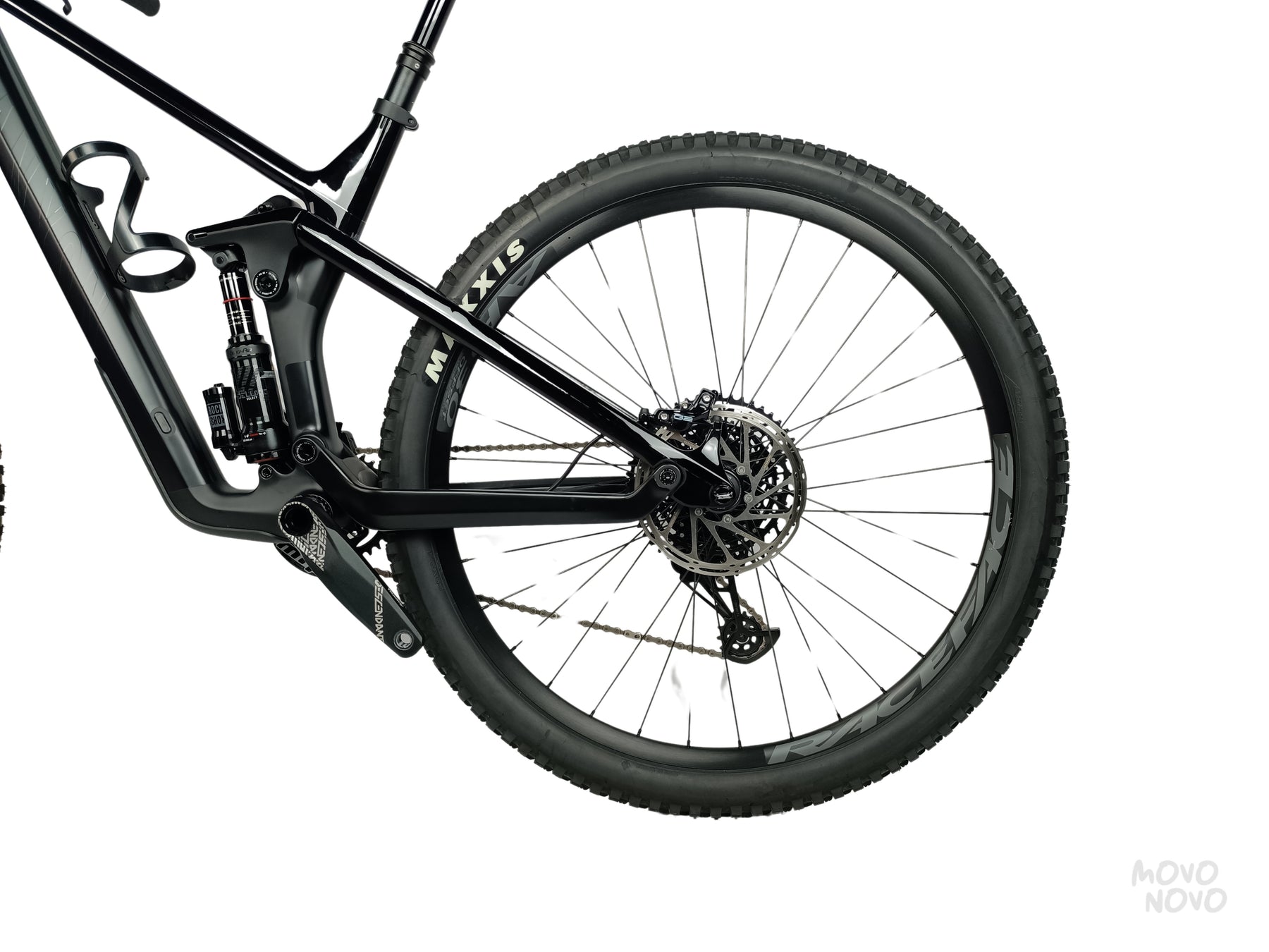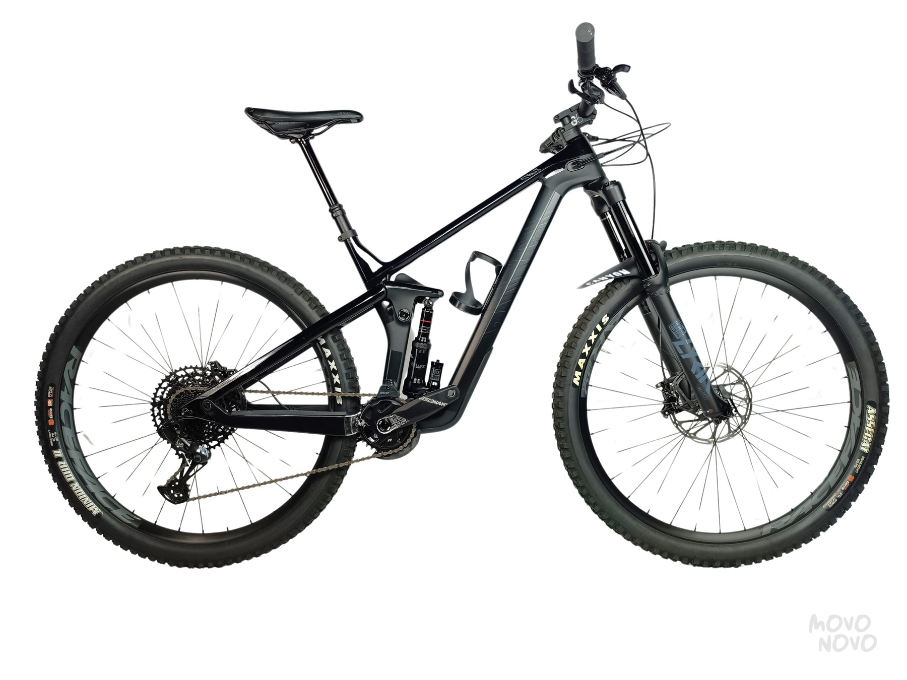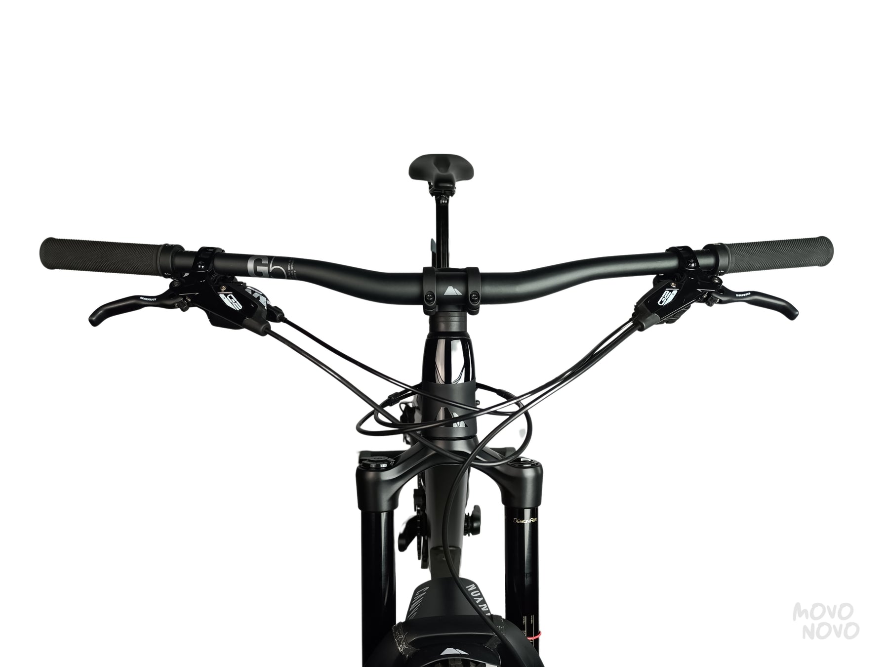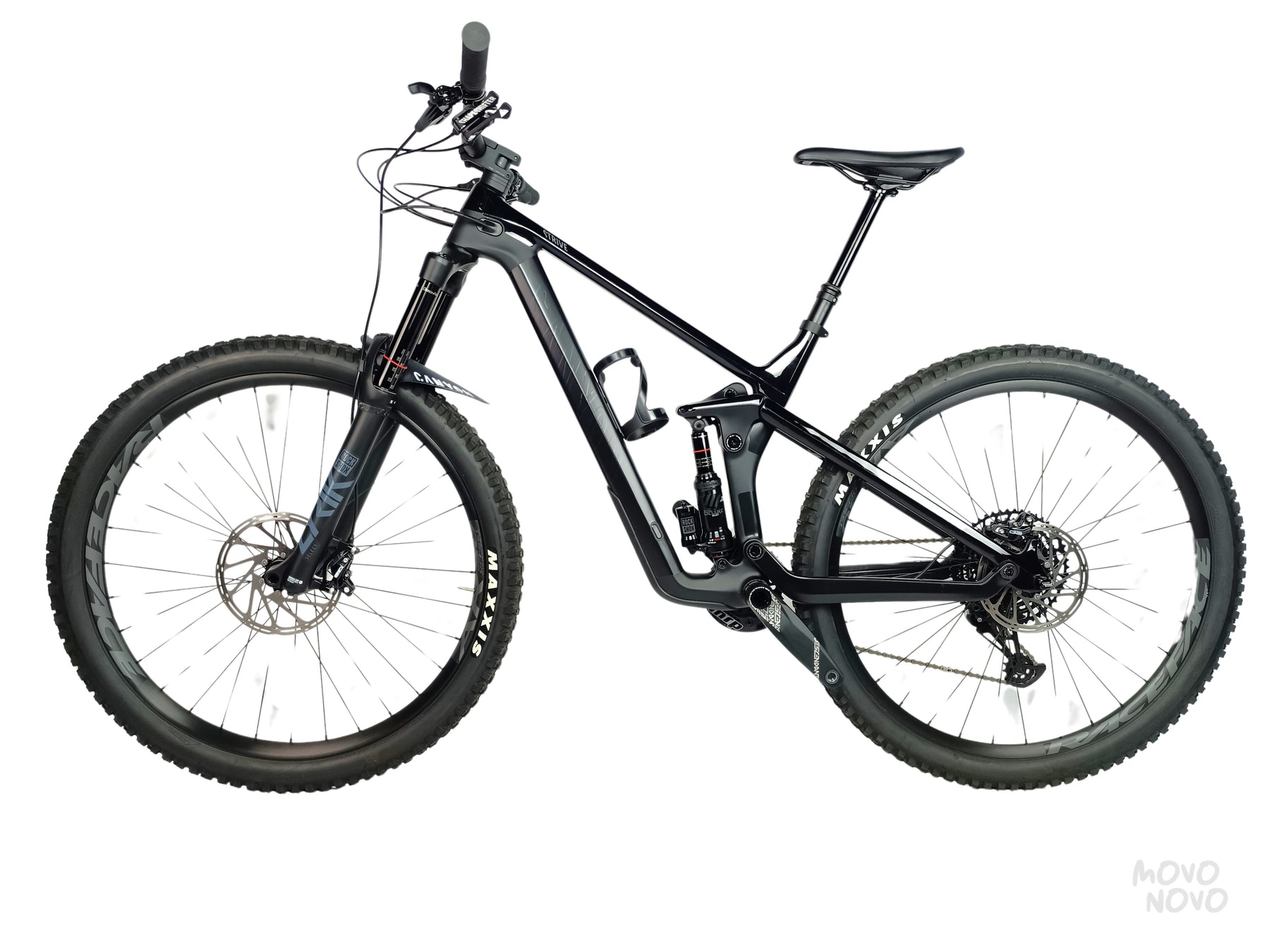 Una bicicleta de enduro talla M. El cuadro es de carbón. Pesa 13 kg. Tiene componentes Sram. Después de una detallada revisión, su calificación es de 10.