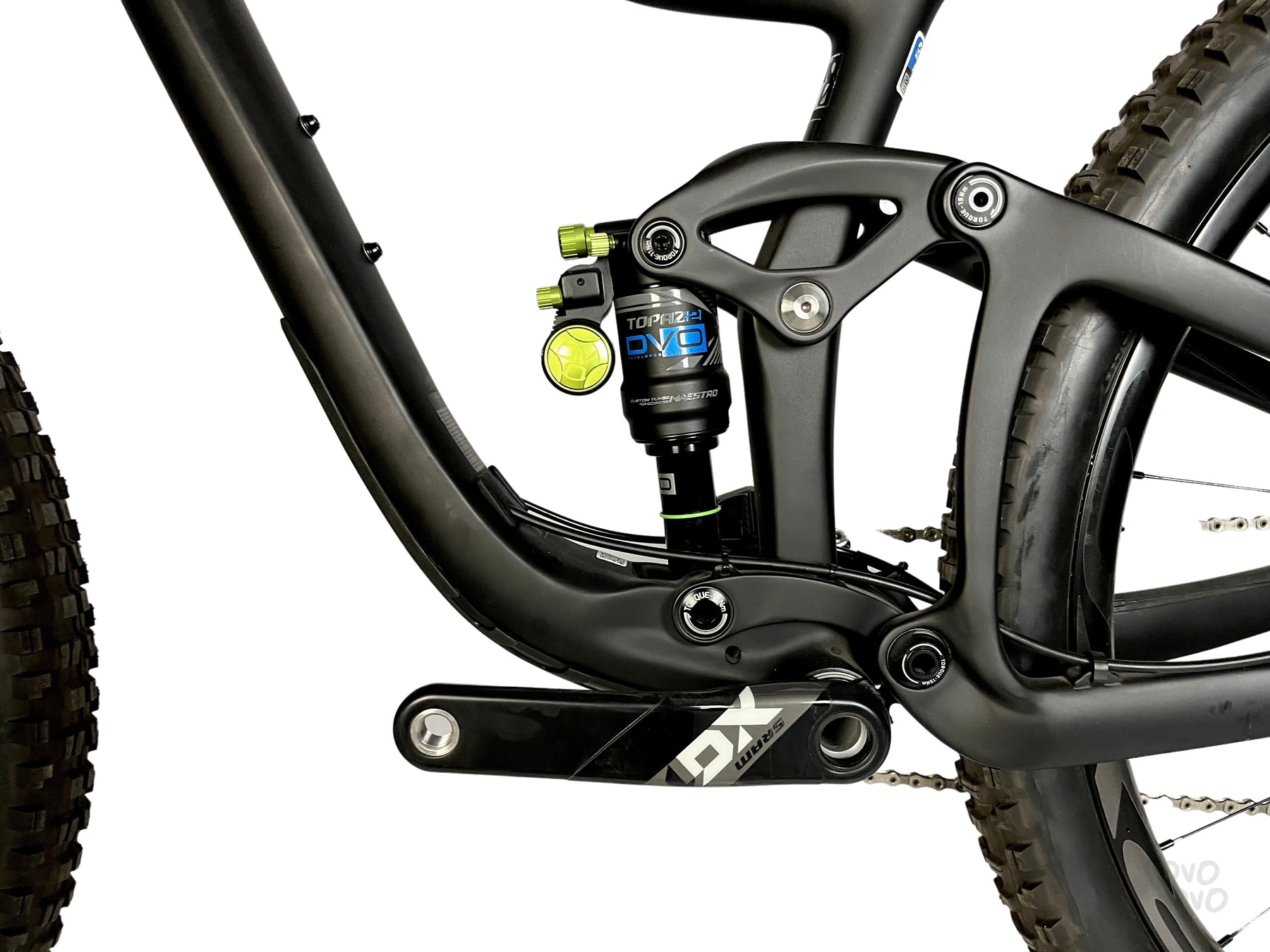 Una bicicleta de Enduro talla S. El cuadro es de carbón. Pesa 13 kg. Tiene componentes Sram X0. Después de una detallada revisión, su calificación es de 9.