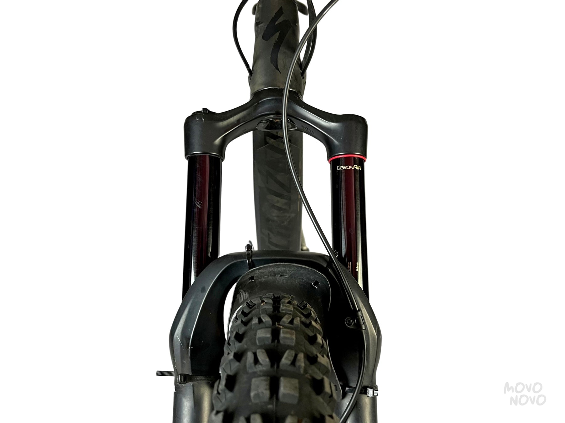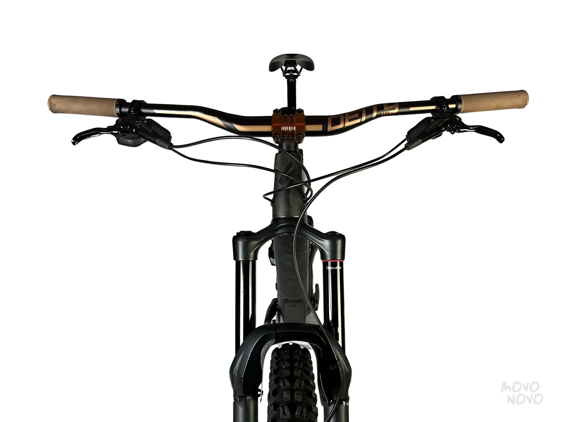 Una bicicleta de enduro talla S4. El cuadro es de carbón. Pesa 10 kg. Tiene componentes Sram . Después de una detallada revisión, su calificación es de 8.08.