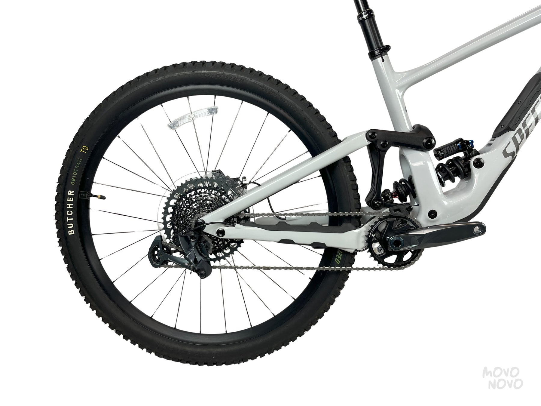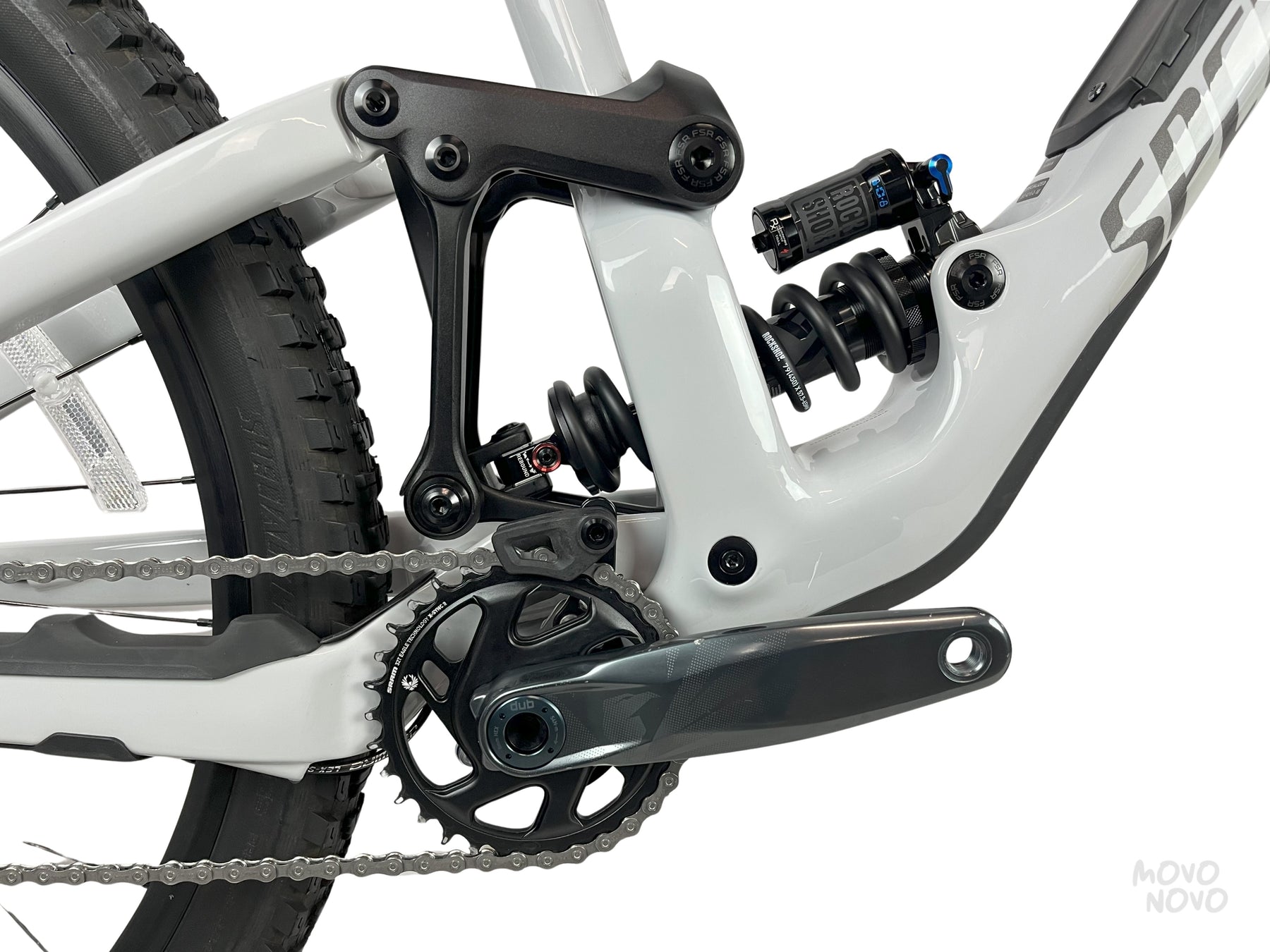 La bicicleta está equipada con una transmisión SRAM GX 1x12, frenos SRAM Code RS, Suspensiones RockShox Zeb Select, y shock RockShox Super Deluxe Select +