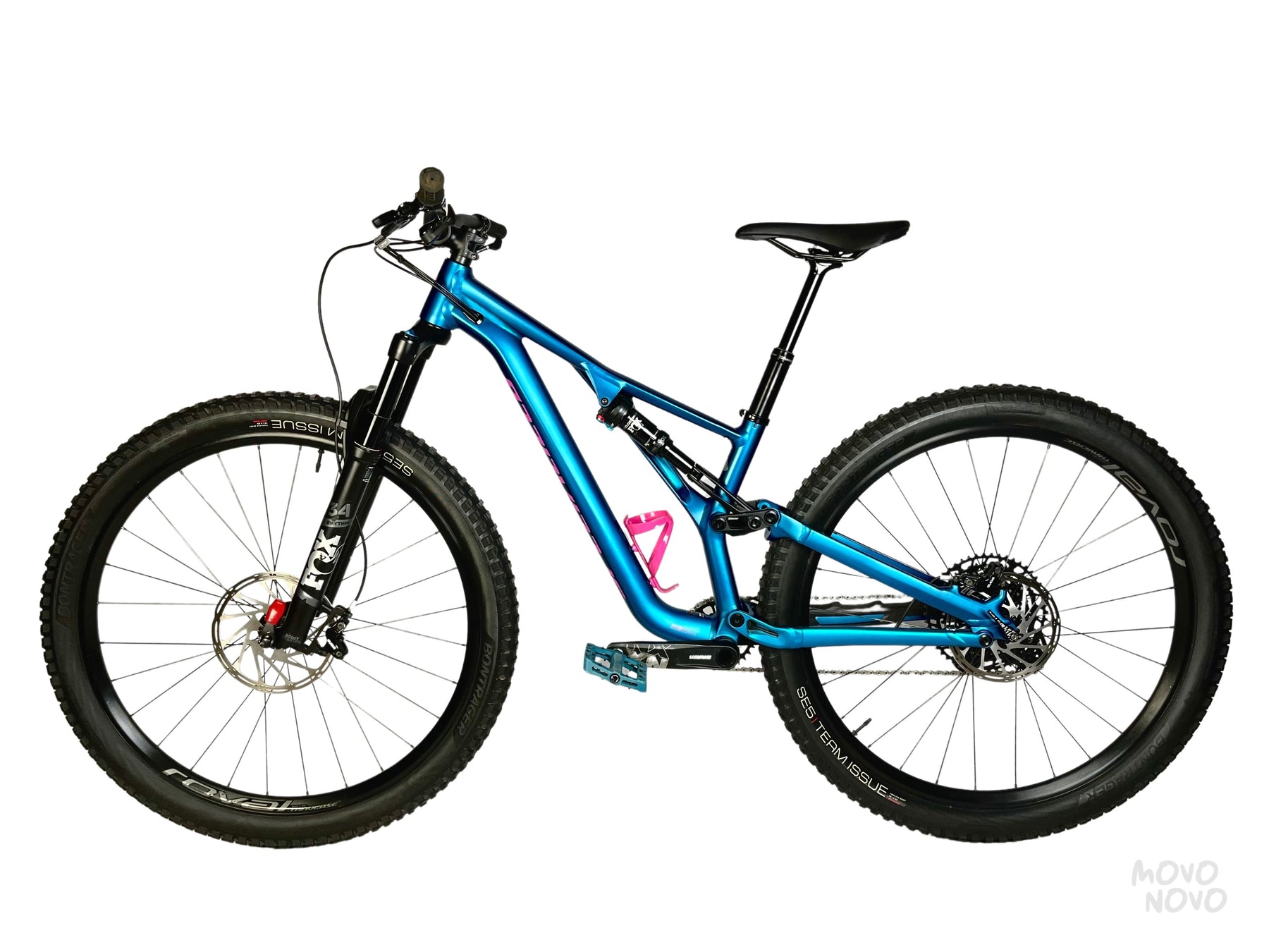 Una bicicleta de enduro talla S. El cuadro es de aluminio. Pesa 13 kg. Tiene componentes Sram Nx. Después de una detallada revisión, su calificación es de 9.4.