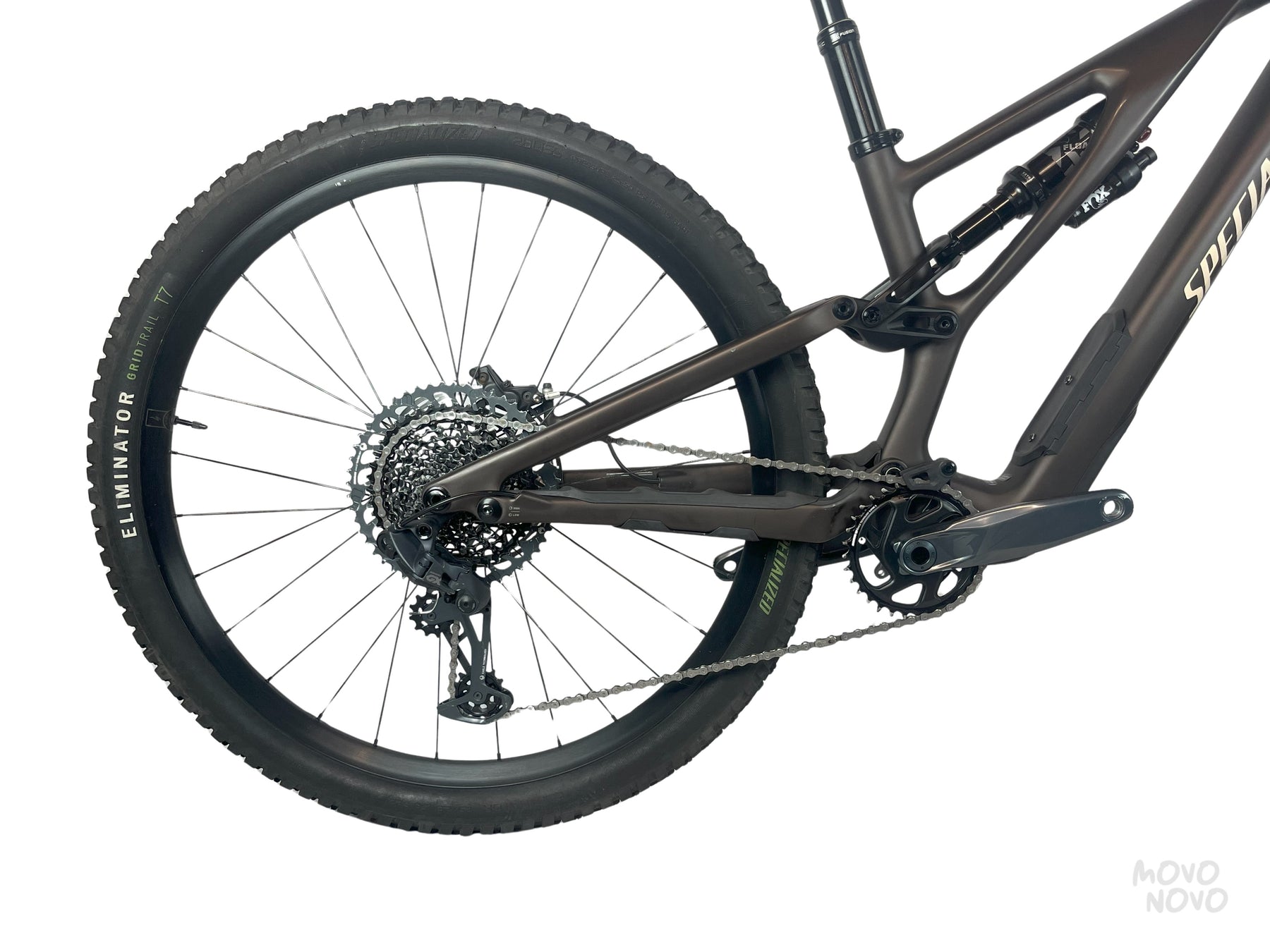 La bicicleta esta equipada con una transmisión SRAM GX 1x12, frenos SRAM Code RS, suspension Fox 36 Rhythm y Shock Fox FloatX
