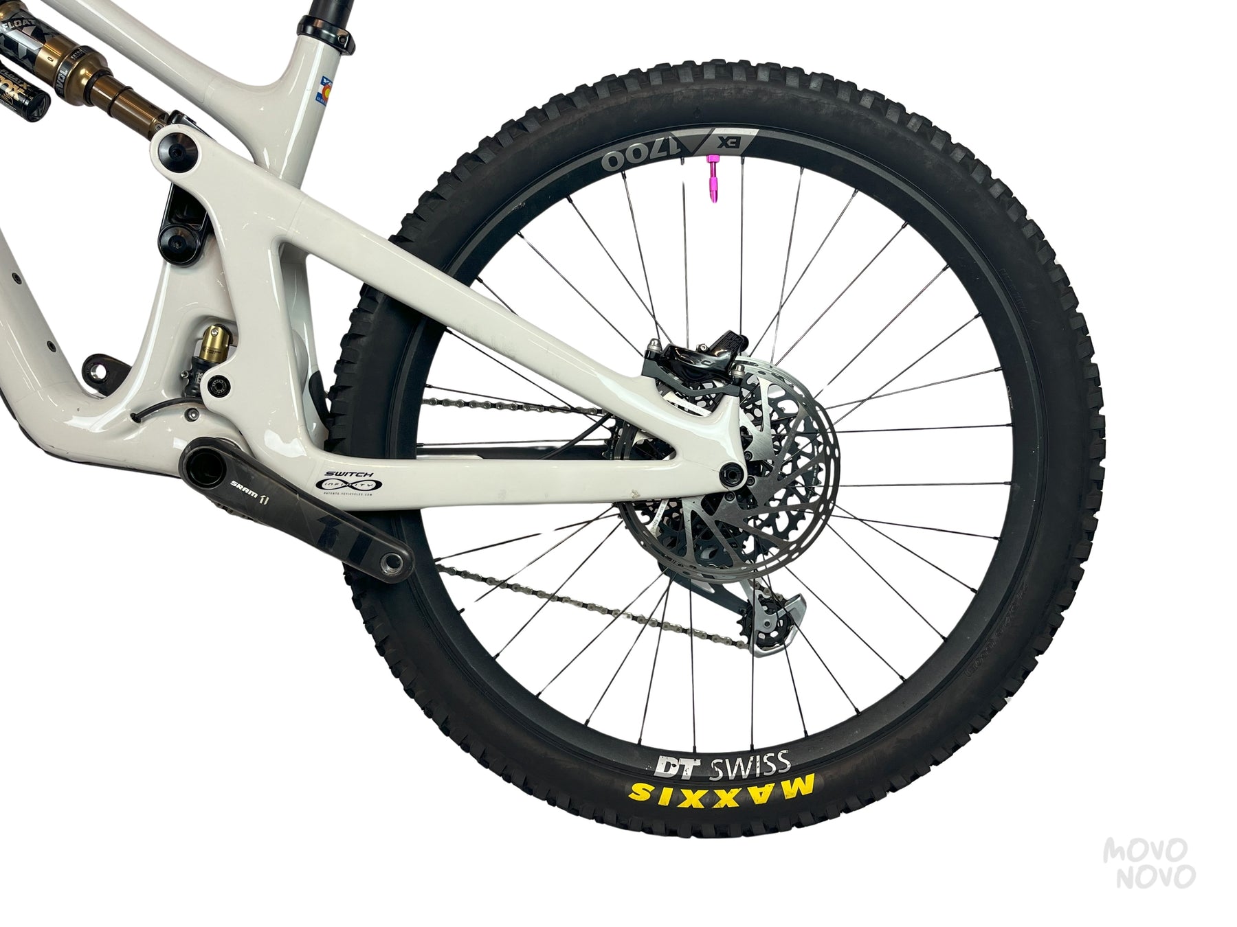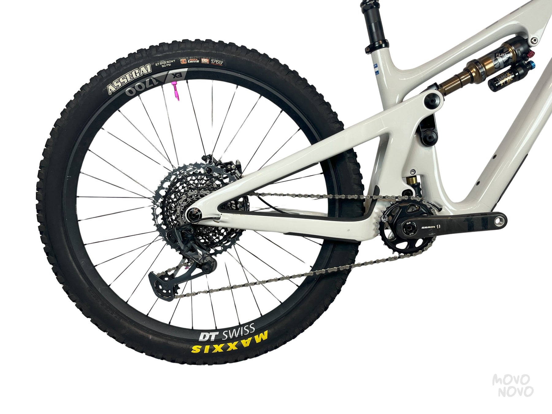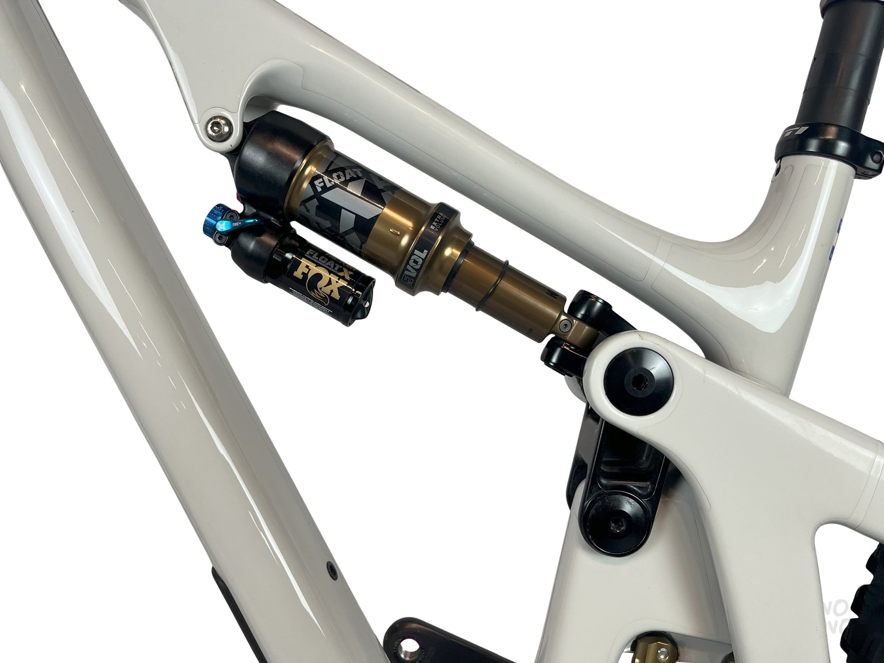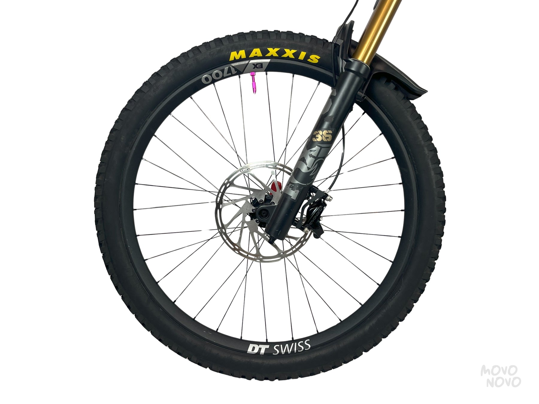 La bicicleta está equipada con una transmisión SRAM X01 mecánica, suspensión Fox 36 Factory, shock Fox FloatX Factory, frenos SRAM Code RSC, dropper Fox Transfer y rines DTSwiss Ex 1700