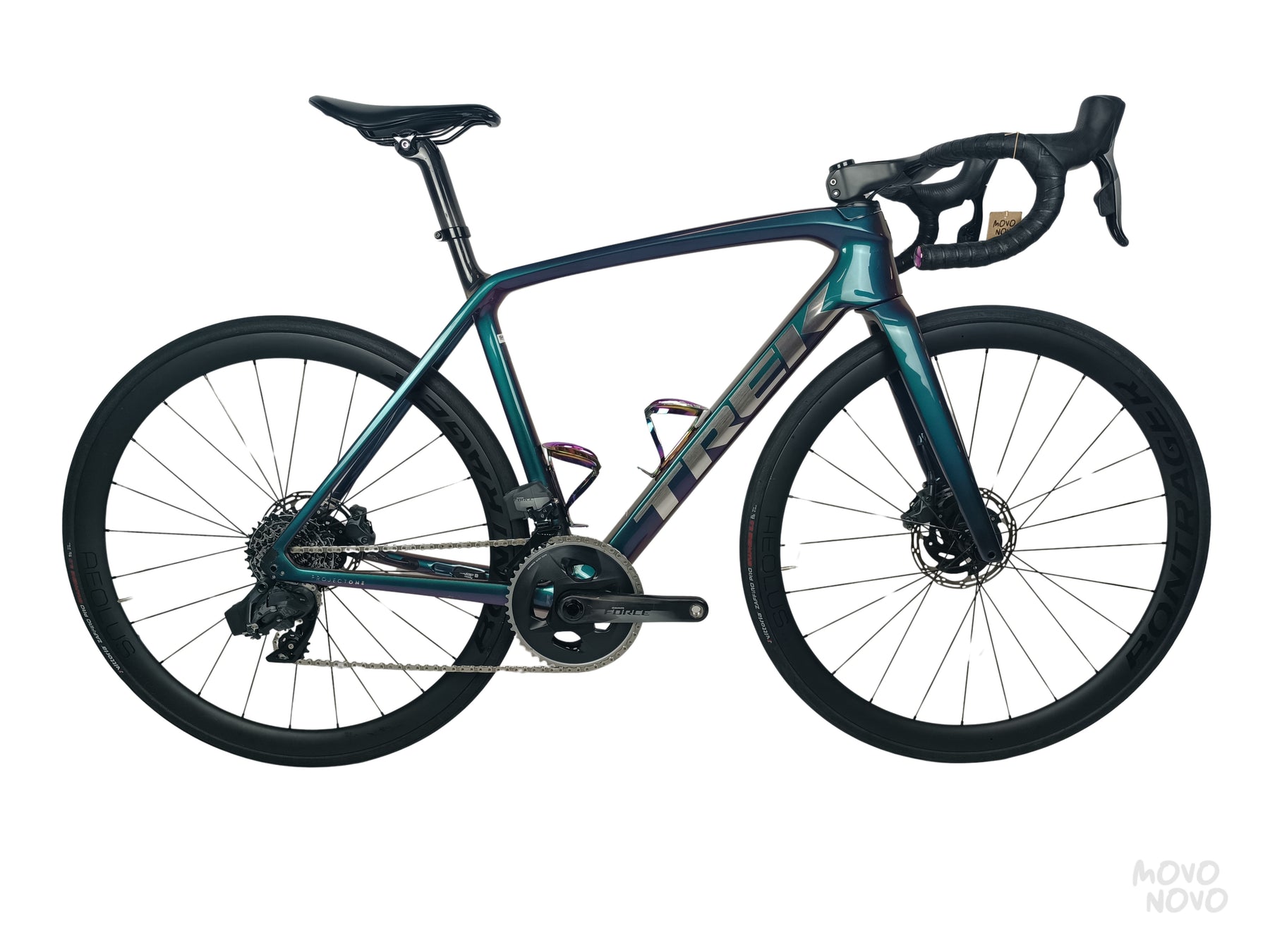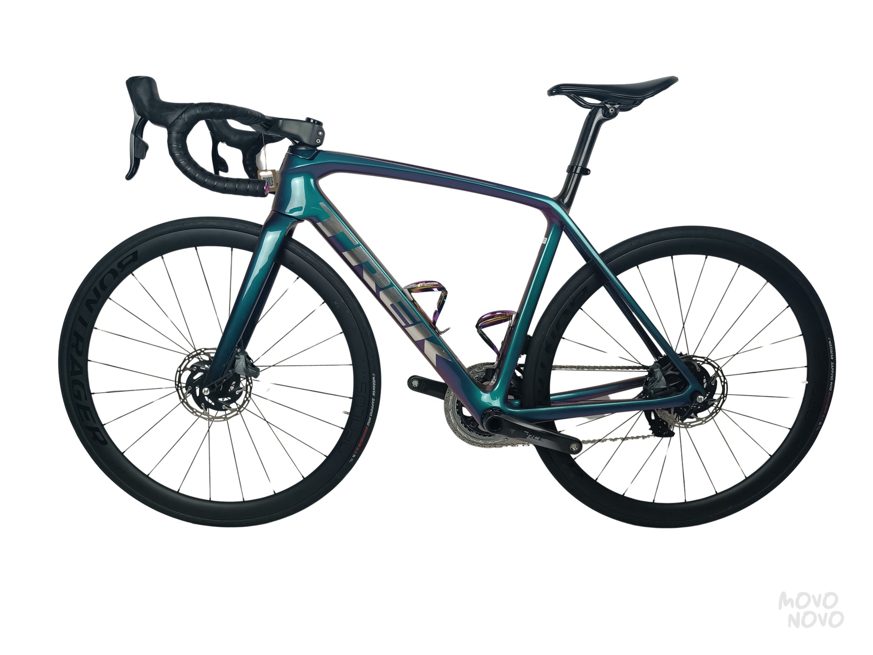 Una bicicleta de ruta talla 54. El cuadro es de carbón. Pesa 8 kg. Tiene componentes SRAM FORCE AXS . Después de una detallada revisión, su calificación es de 8.99.