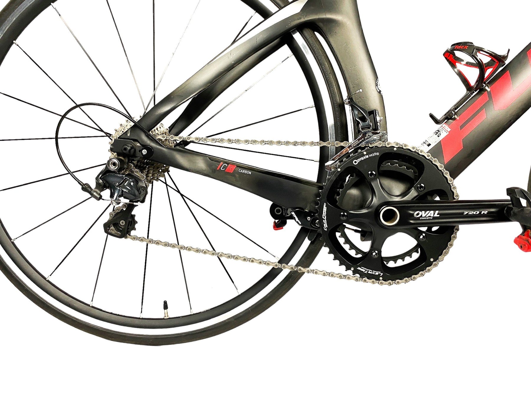 Una bicicleta de triatlón talla 51. El cuadro es de carbon c5. Tiene componentes Shimano Ultegra, Frenos TRP Oval. Después de una detallada revisión, su calificación es de 9.75.
