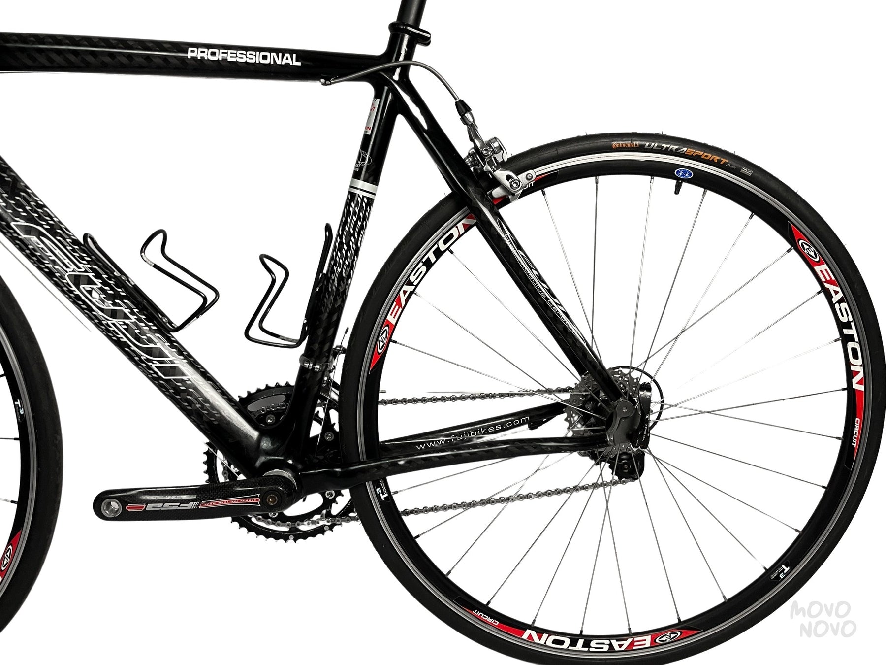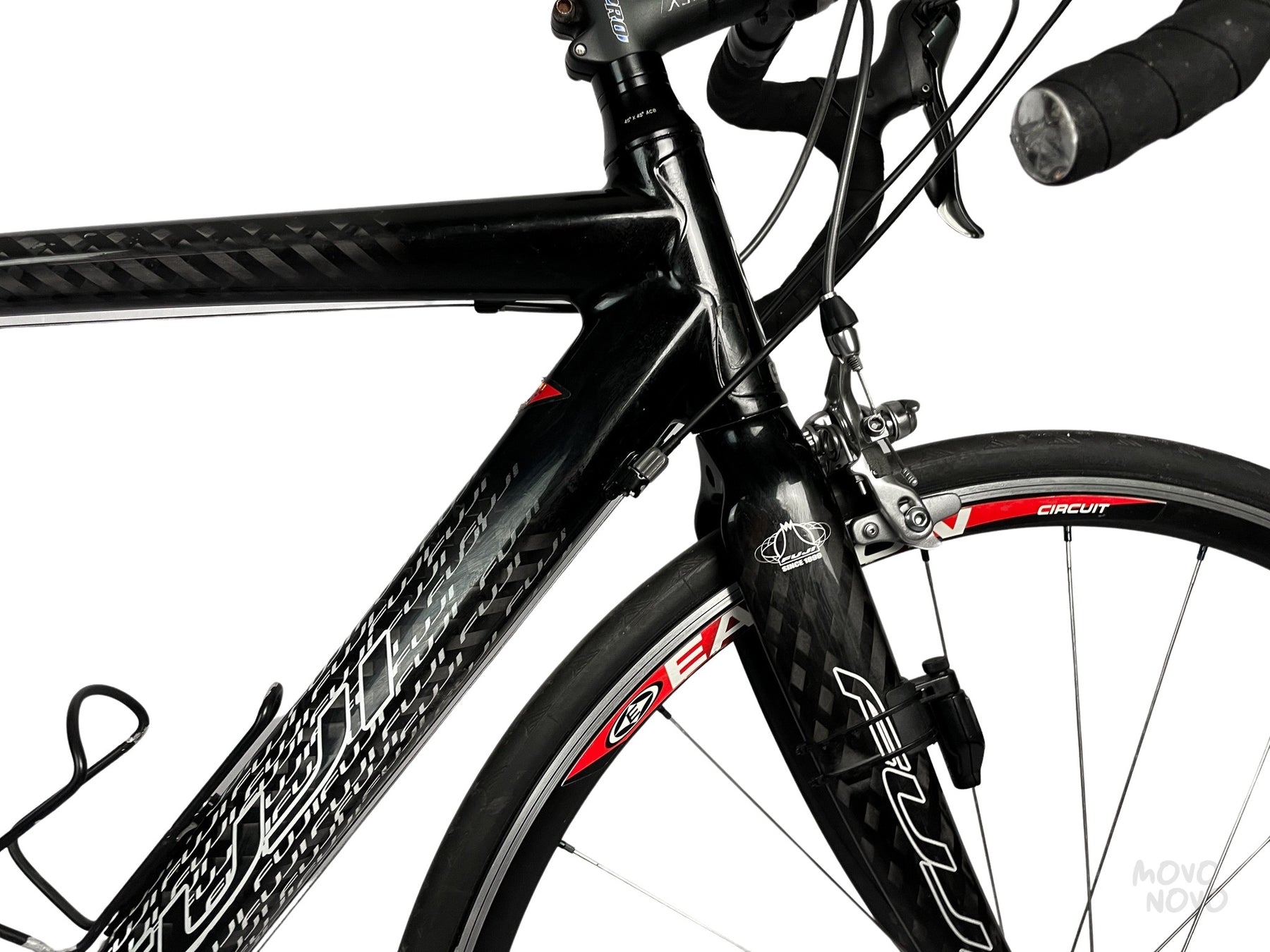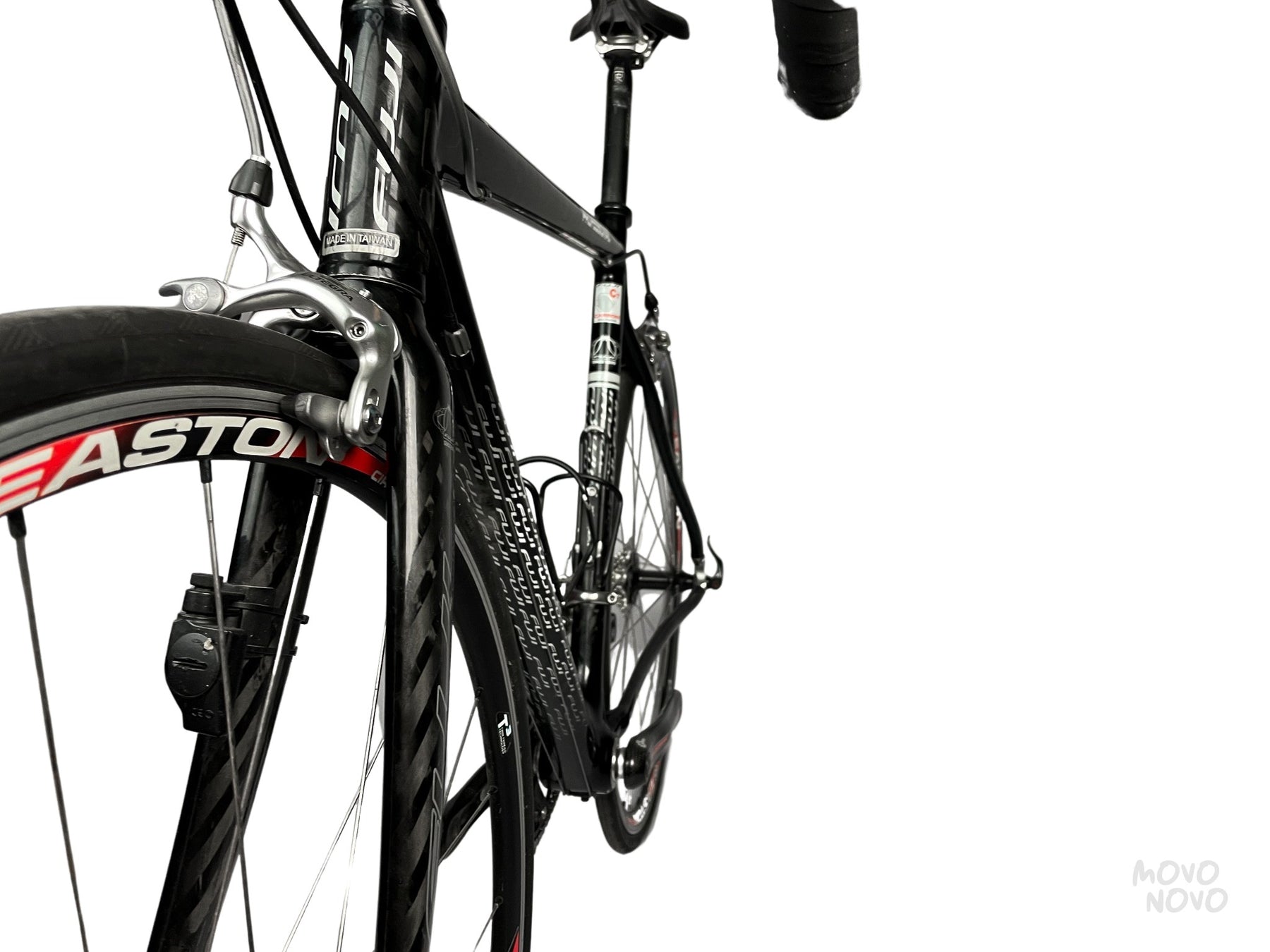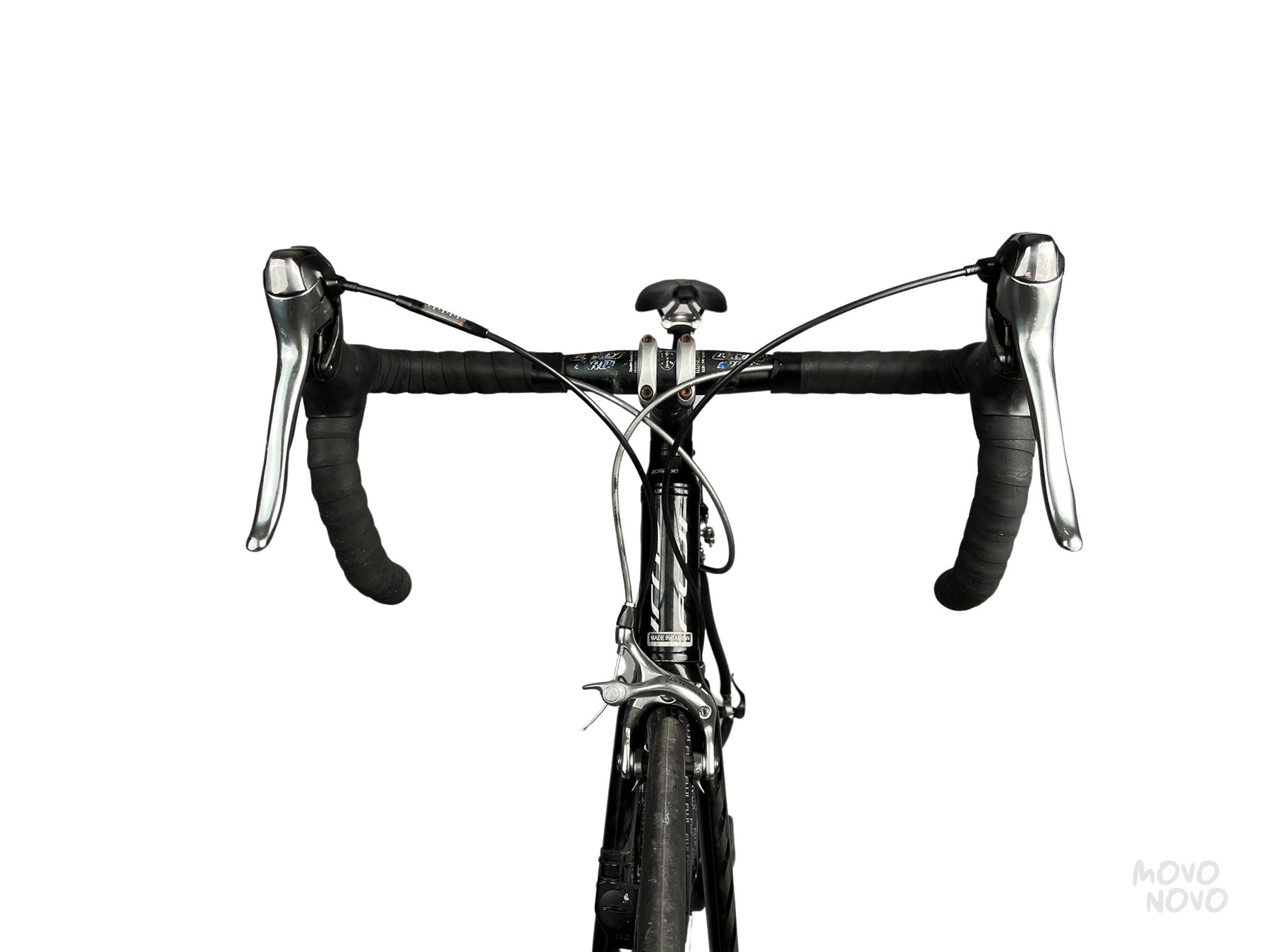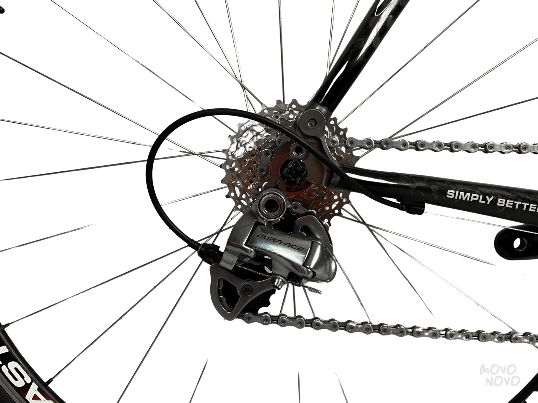 Una bicicleta de ruta talla M . El cuadro es de carbón. Tiene componentes Shimano Dura -Ace. Después de una detallada revisión, su calificación es de 9.7.