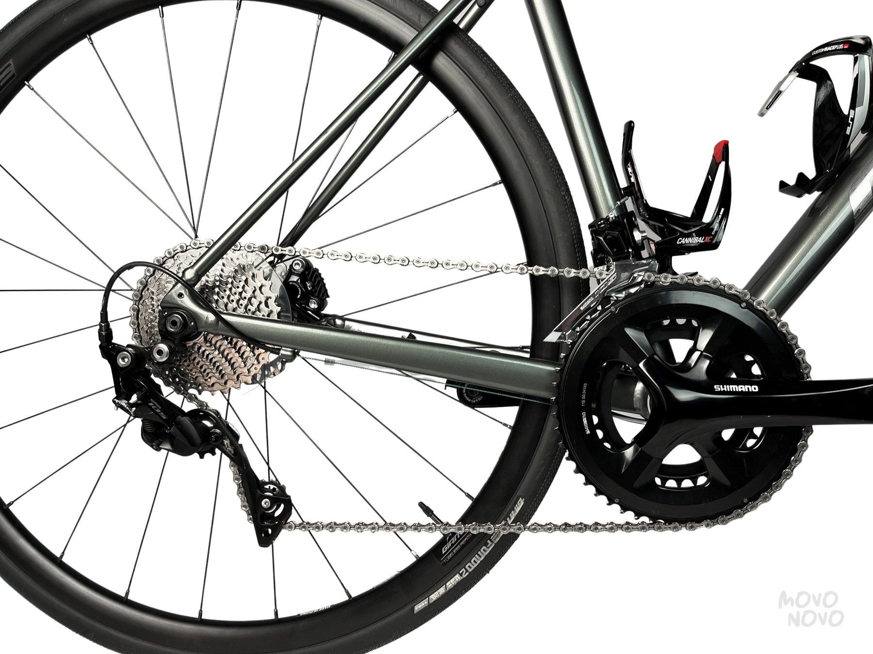 Una bicicleta de gravel talla M. El cuadro es de aluminio. Tiene componentes Shimano 105, rines tubeless. Después de una detallada revisión, su calificación es de 9.19.