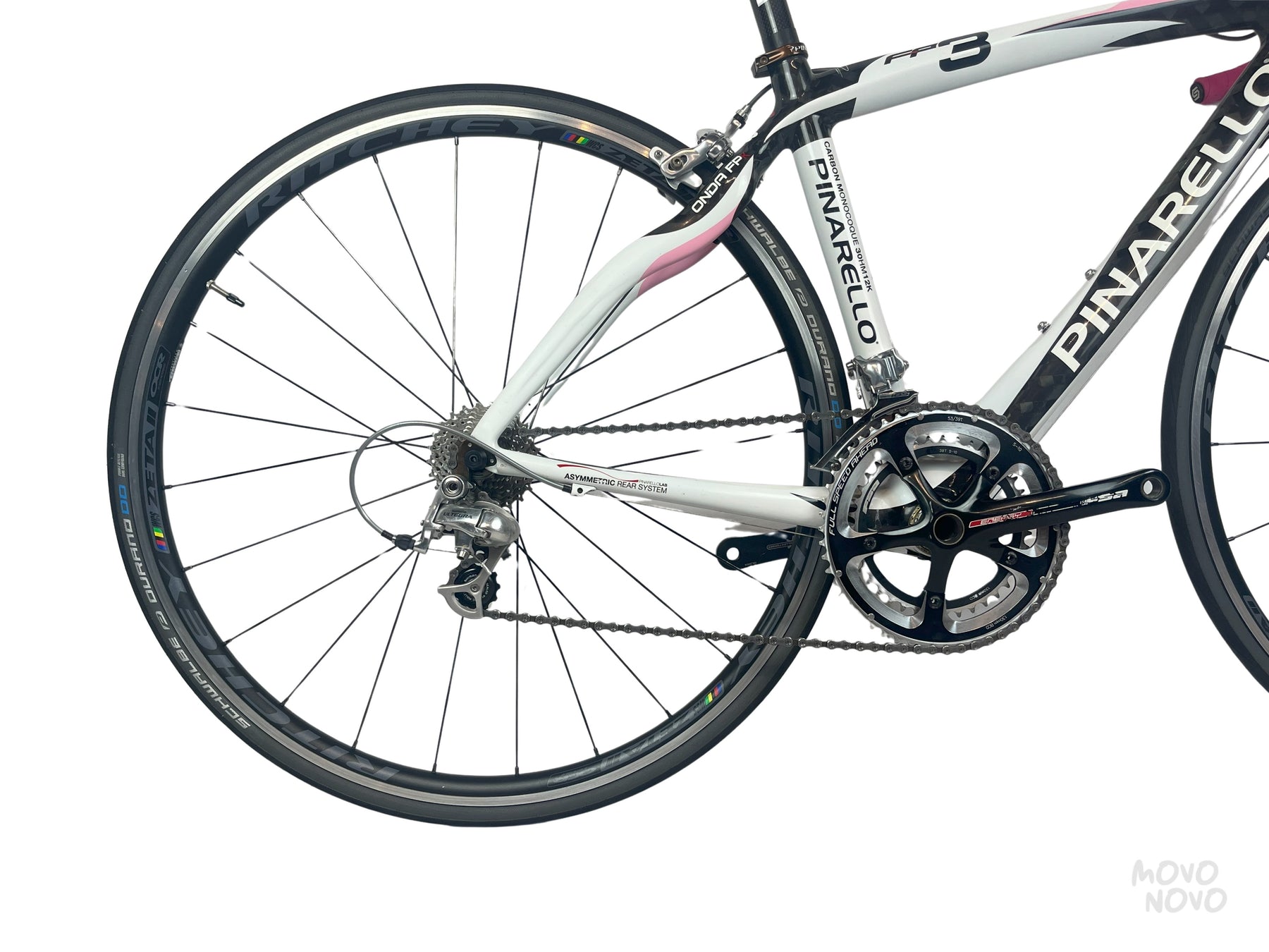 Descubre la bicicleta Pinarello FP3 2011 - 48, perfecta para la disciplina de ruta. Equipada con componentes de alta gama Shimano Ultegra/105, esta ligera bicicleta de solo 7.9kg ofrece un rendimiento excepcional en carretera. Hecha por completo en carbono, garantiza rigidez y resistencia al rodar. Las llantas Schwalbe Durano 700", acompañadas de rines Ritchey Zeta II, aportan durabilidad y una excelente tracción. Los frenos de disco Shimano 105 proporcionan una seguridad inigualable, mientras que la transmisión Ultegra/105 y la relación de engranes 11-25T garantizan cambios suaves para enfrentar cualquier pendiente. Disfruta de máximo confort con el asiento Selle Italia, mientras el manubrio Zeus de 380mm y los grips Serfas aseguran el manejo preciso que buscas. La Pinarello FP3 2011 - 48, tu mejor aliada en ruta.