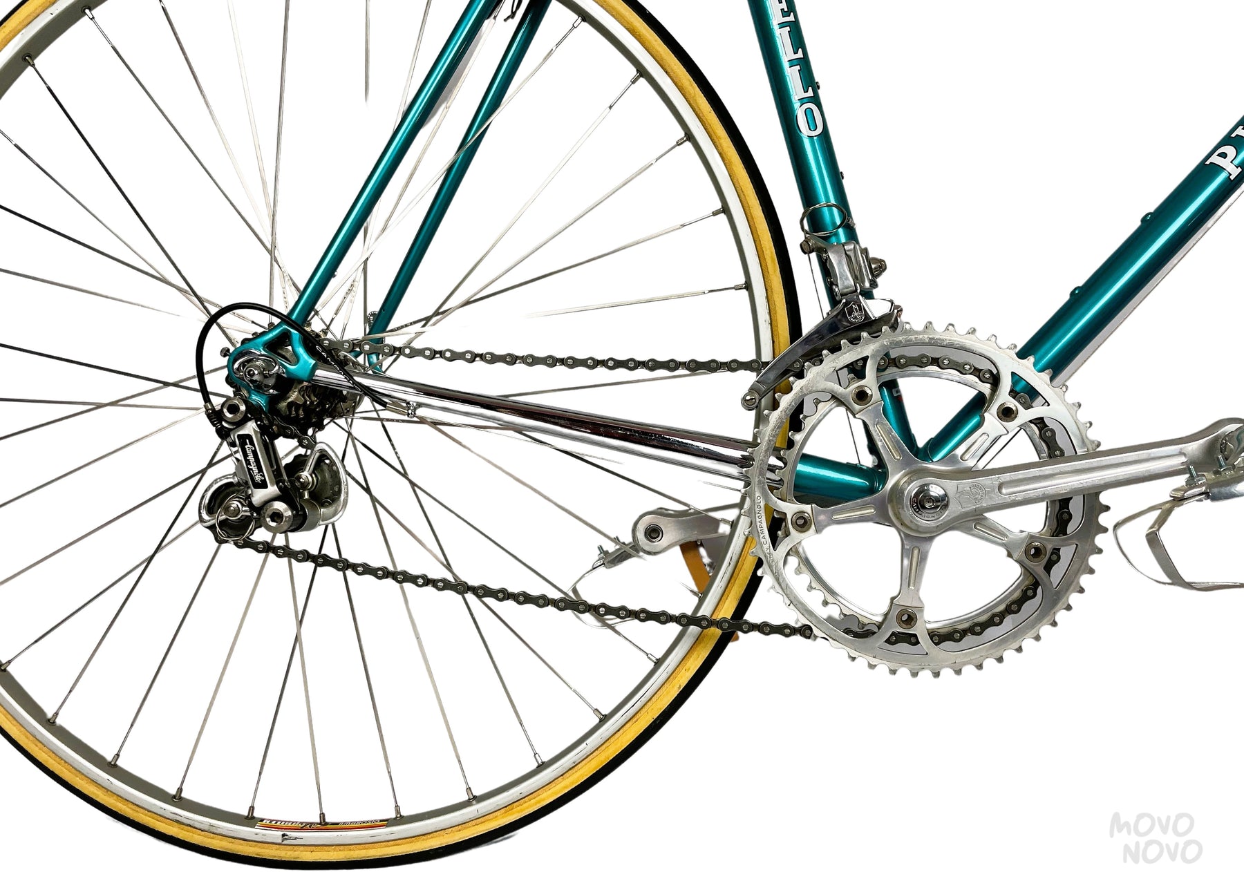 Componentes Campagnolo de la época, aplicaciones de cobalto en pinzas de frenos, llantas de vittoria de Kevlar.