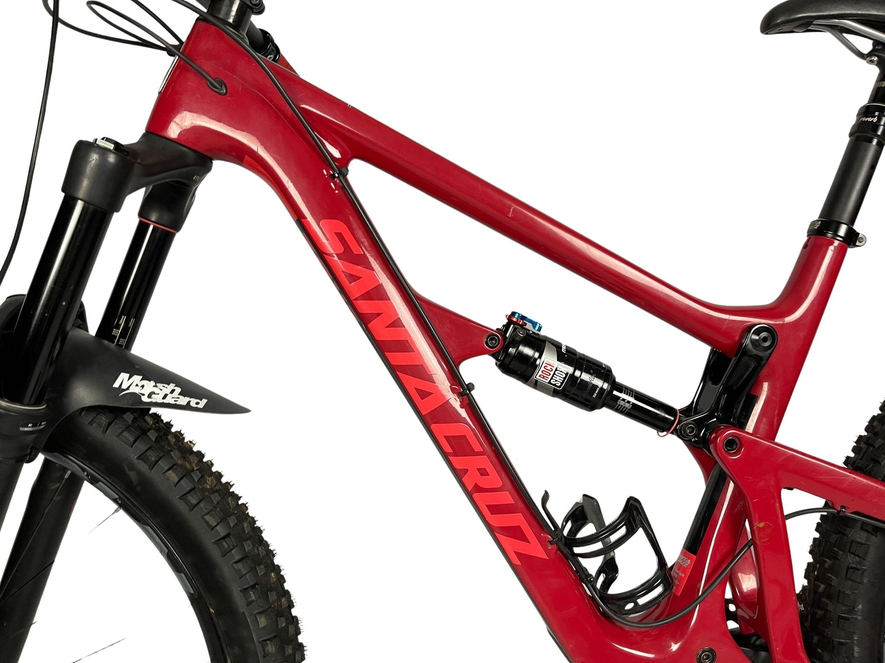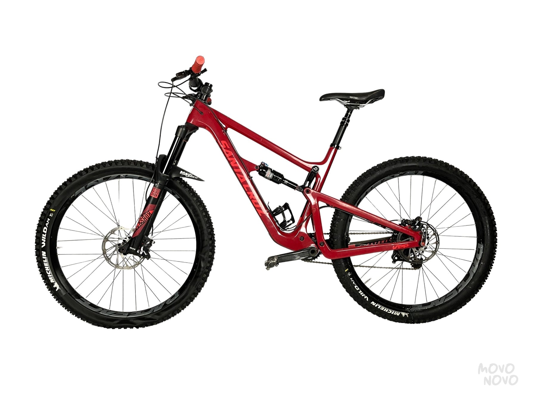 Una bicicleta de enduro talla L. El cuadro es de carbón. Tiene componentes Sram GX. Después de una detallada revisión, su calificación es de 8.95.