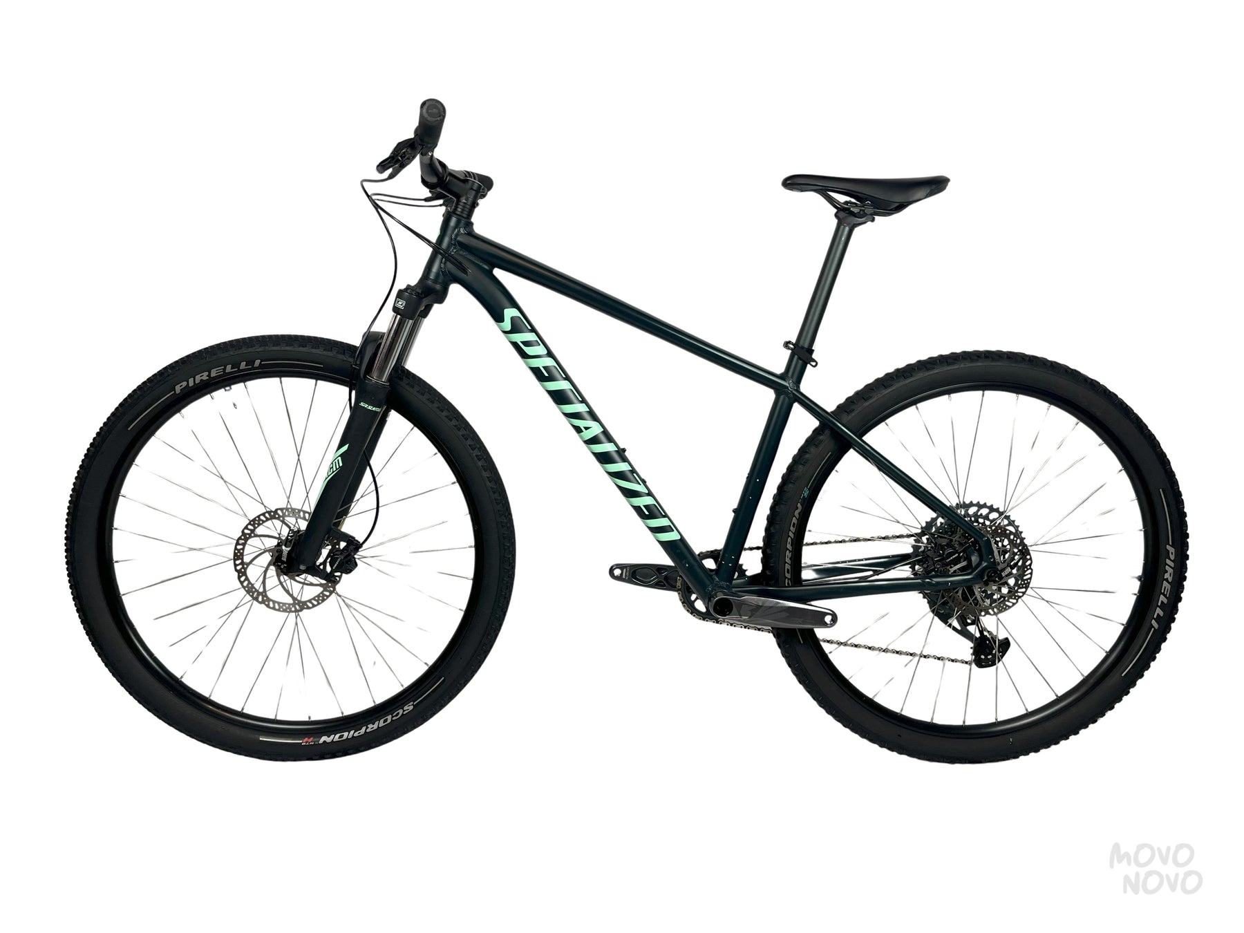 Presentamos la Specialized Rockhopper Sport 2020, ideal para disciplinas de montaña y Cross Country. Esta increíble bicicleta de talla L, fabricada en aluminio duradero, está equipada con poderosos componentes GX. Disfruta de un rodaje suave y seguro con las llantas Pirelli Scorpion de 29'' y los frenos de disco Tektro HD-M275. La transmisión SRAM GX y la relación de engranajes de 32T a 10-52 garantizan un rendimiento excepcional en cualquier terreno. Con su horquilla SR Suntour XCM de 100mm y detalles de marca especializados como el manubrio, los grips y el asiento, cada viaje será una gran aventura. ¡Una elección formidable para los verdaderos entusiastas del ciclismo!
