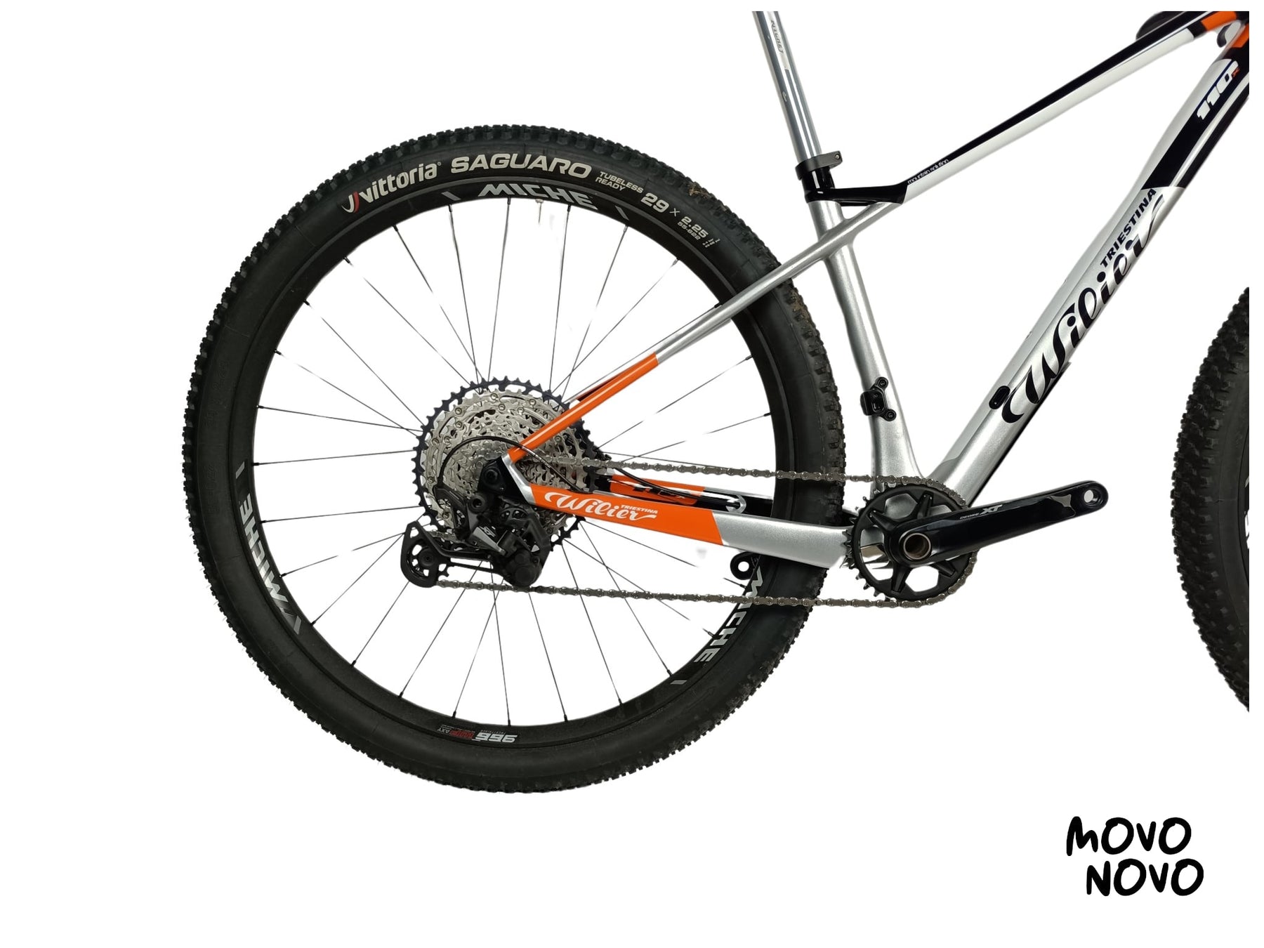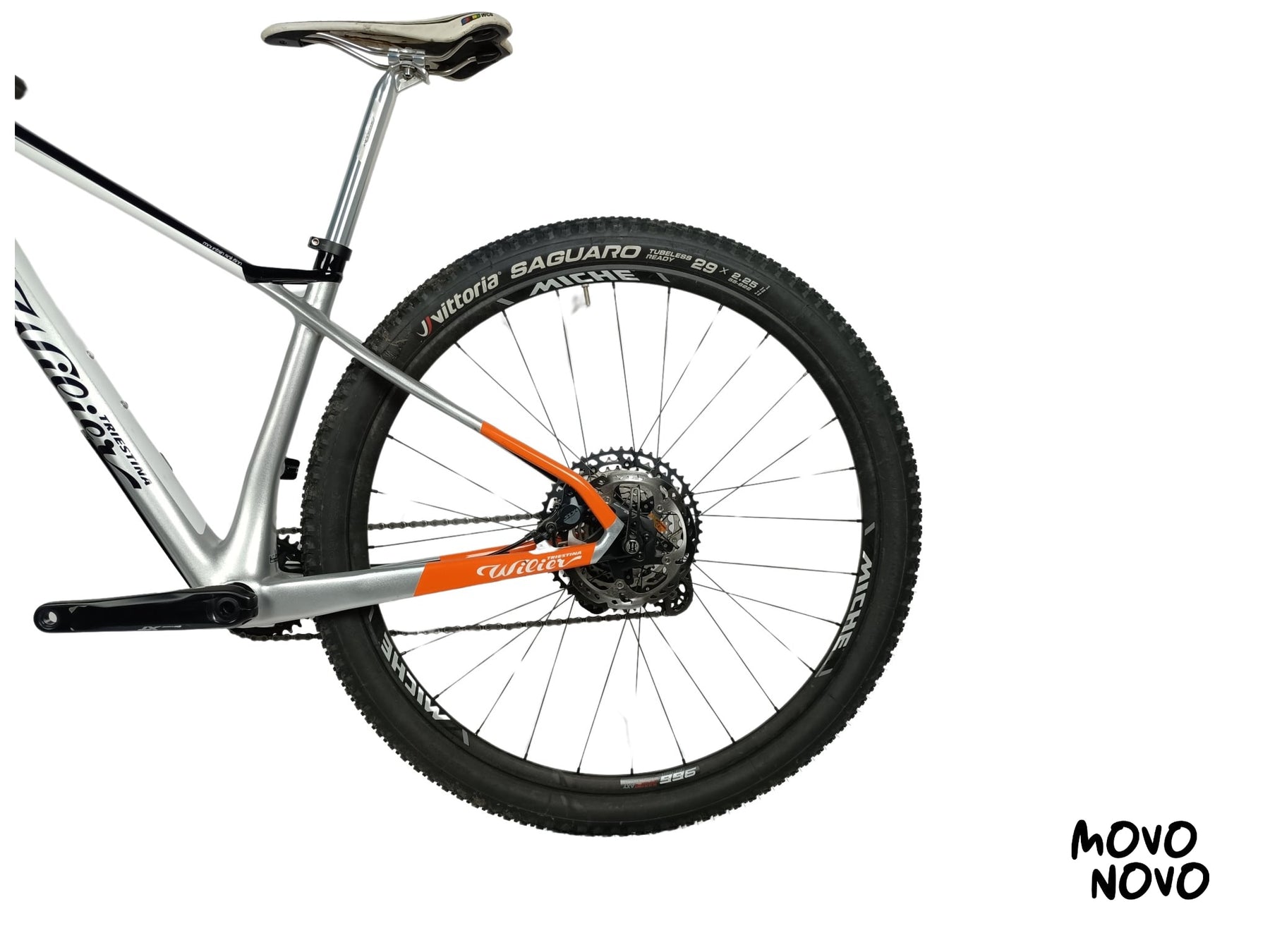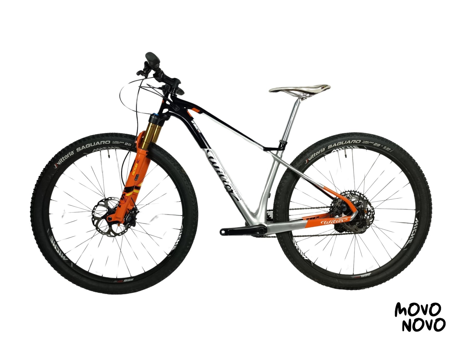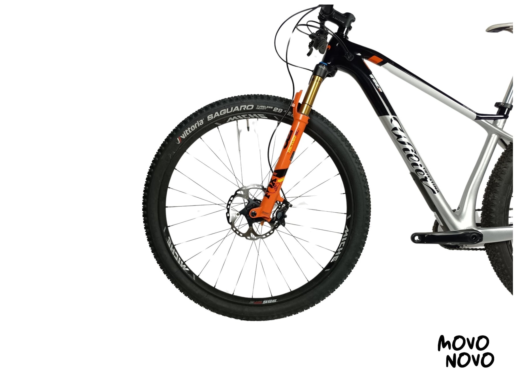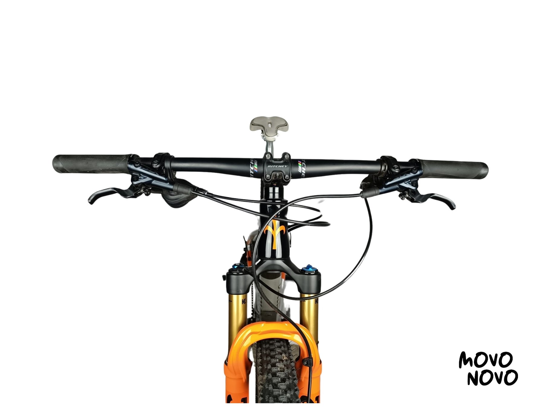 Una bicicleta de cross country talla S. El cuadro es de carbón. Pesa 10 kg. Tiene componentes Shimano . Después de una detallada revisión, su calificación es de 9.32.