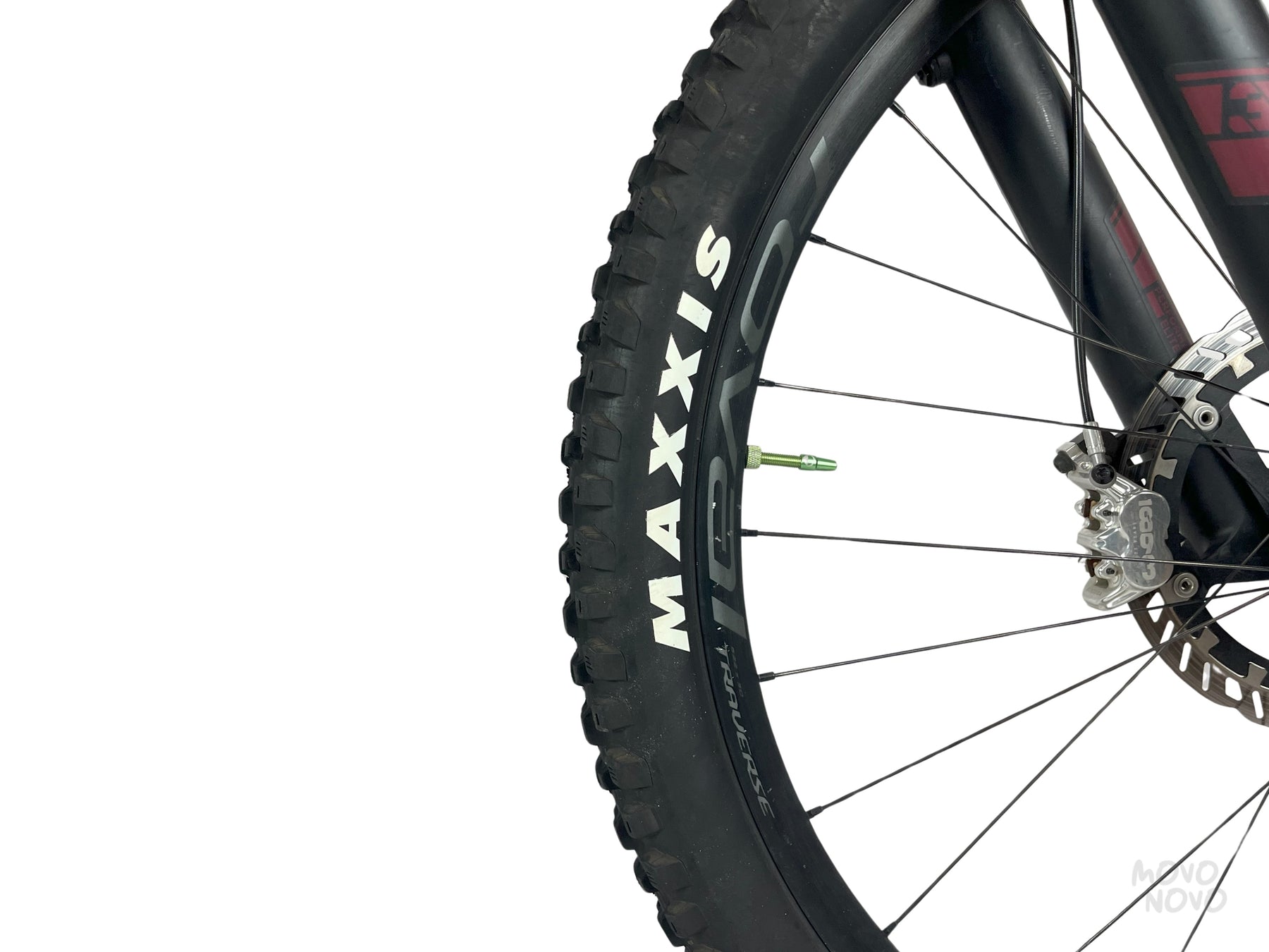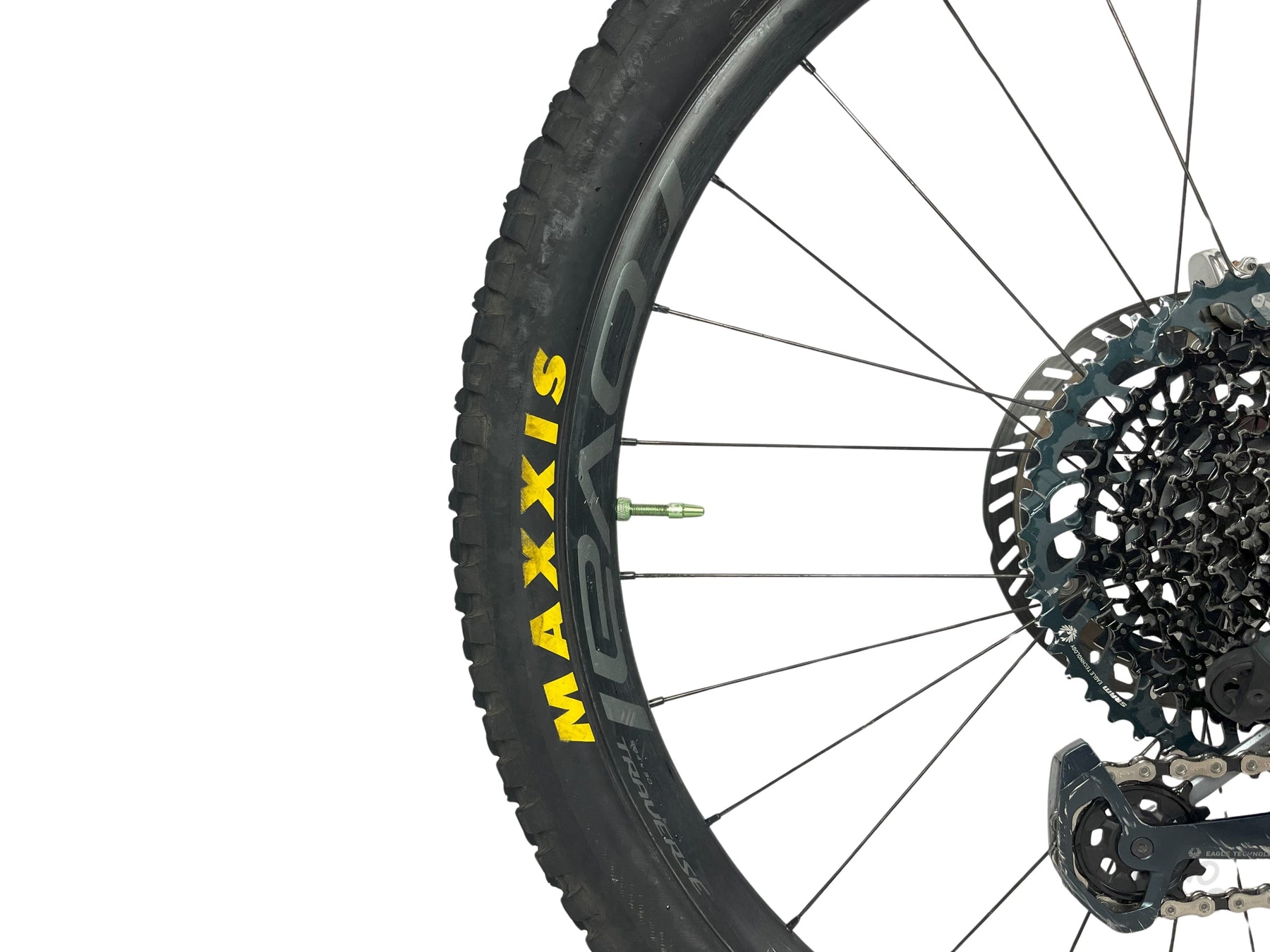 La bicicleta esta equipada con desviador X01, Cassette Gx, suspension Fox 38 Performance Elite y shock Fox Float X2