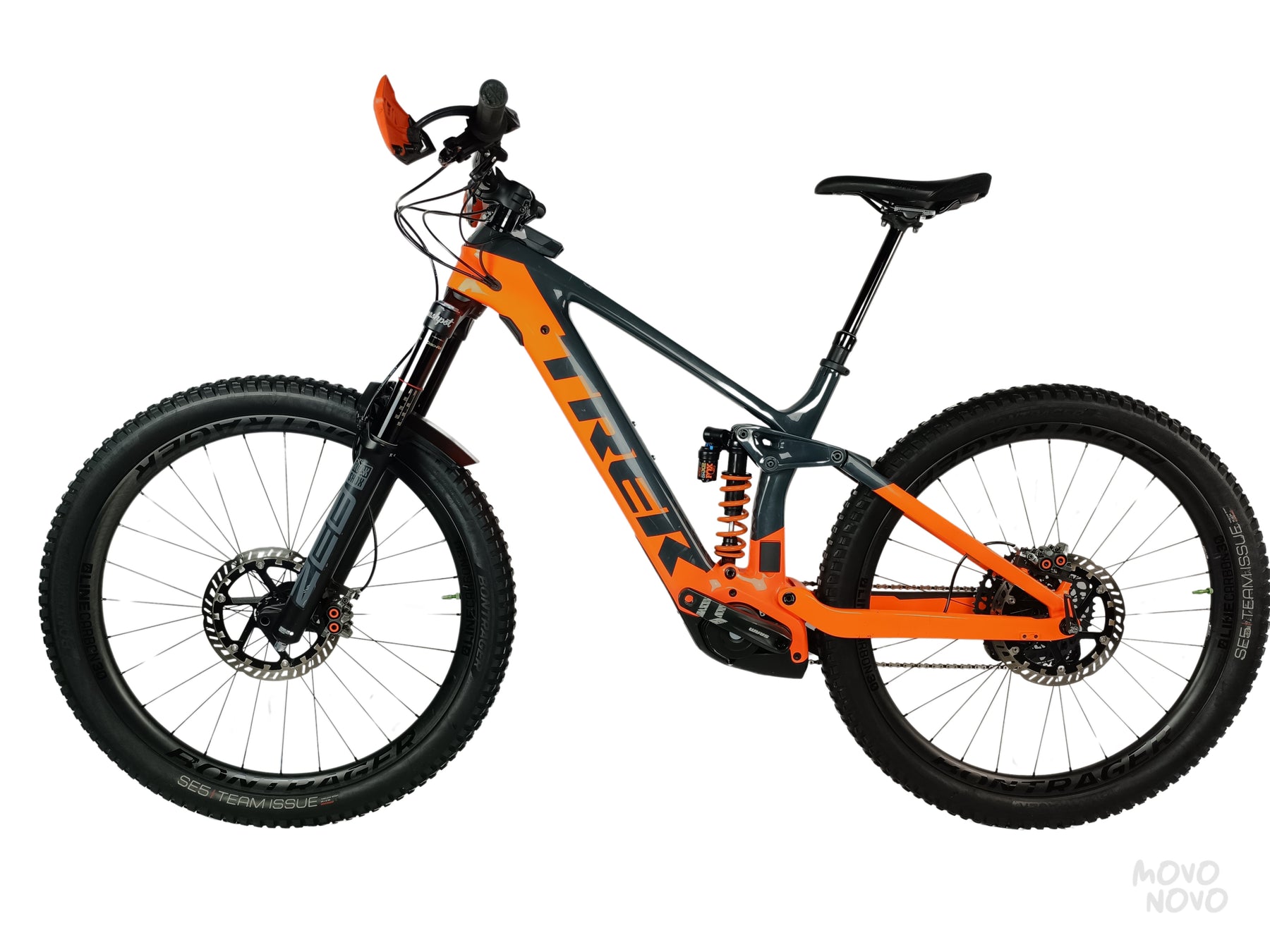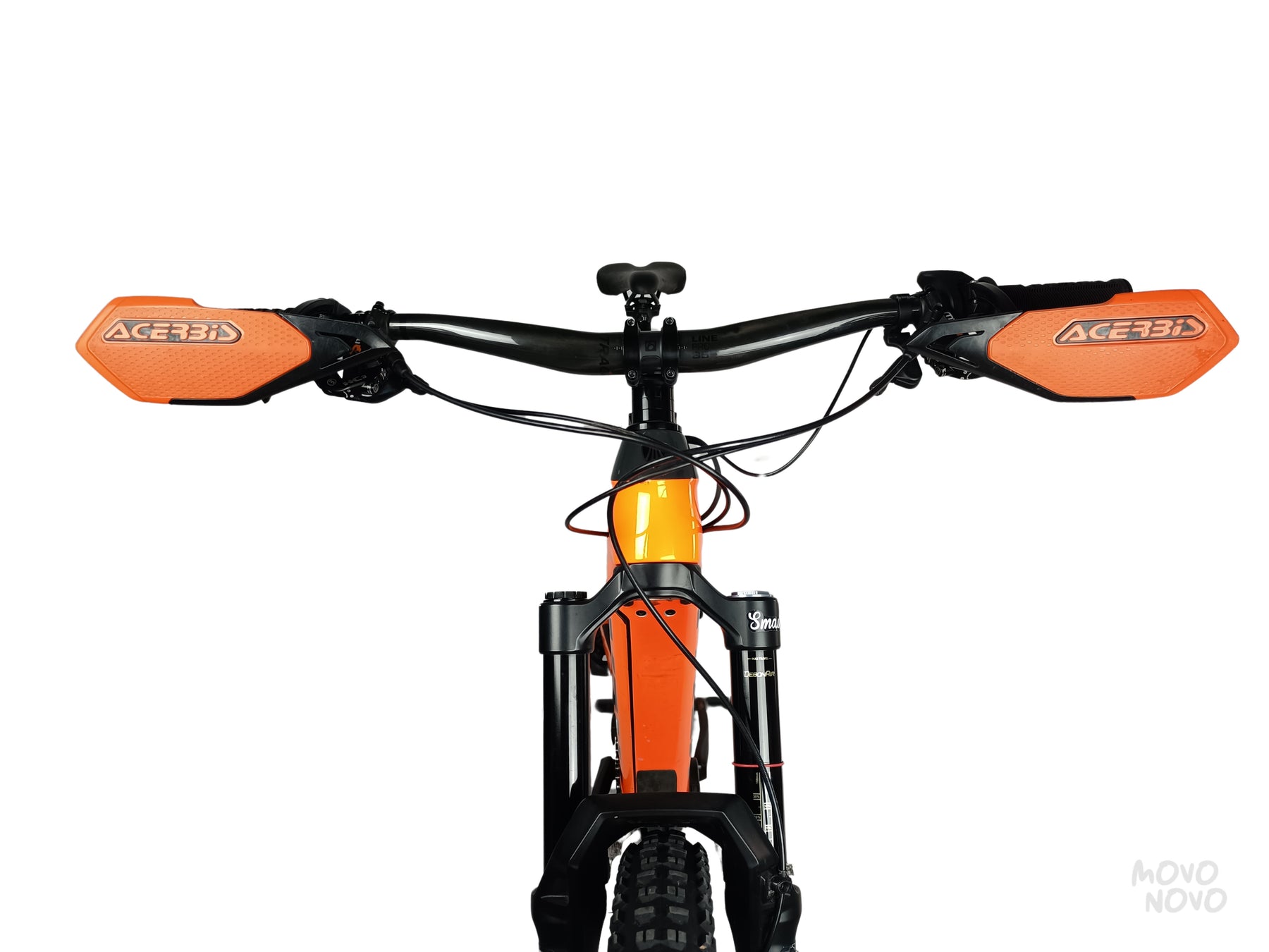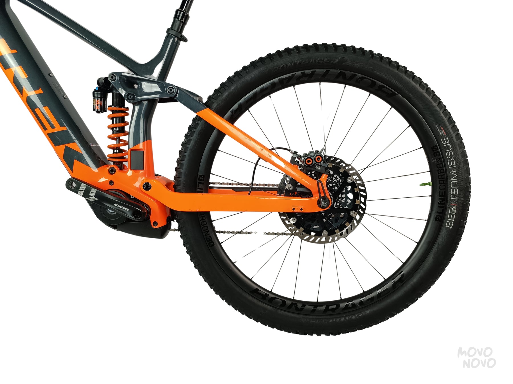 Una bicicleta de e-bike enduro talla L. El cuadro es de carbón. Pesa 20 kg. Tiene componentes Sram . Después de una detallada revisión, su calificación es de 8.96.