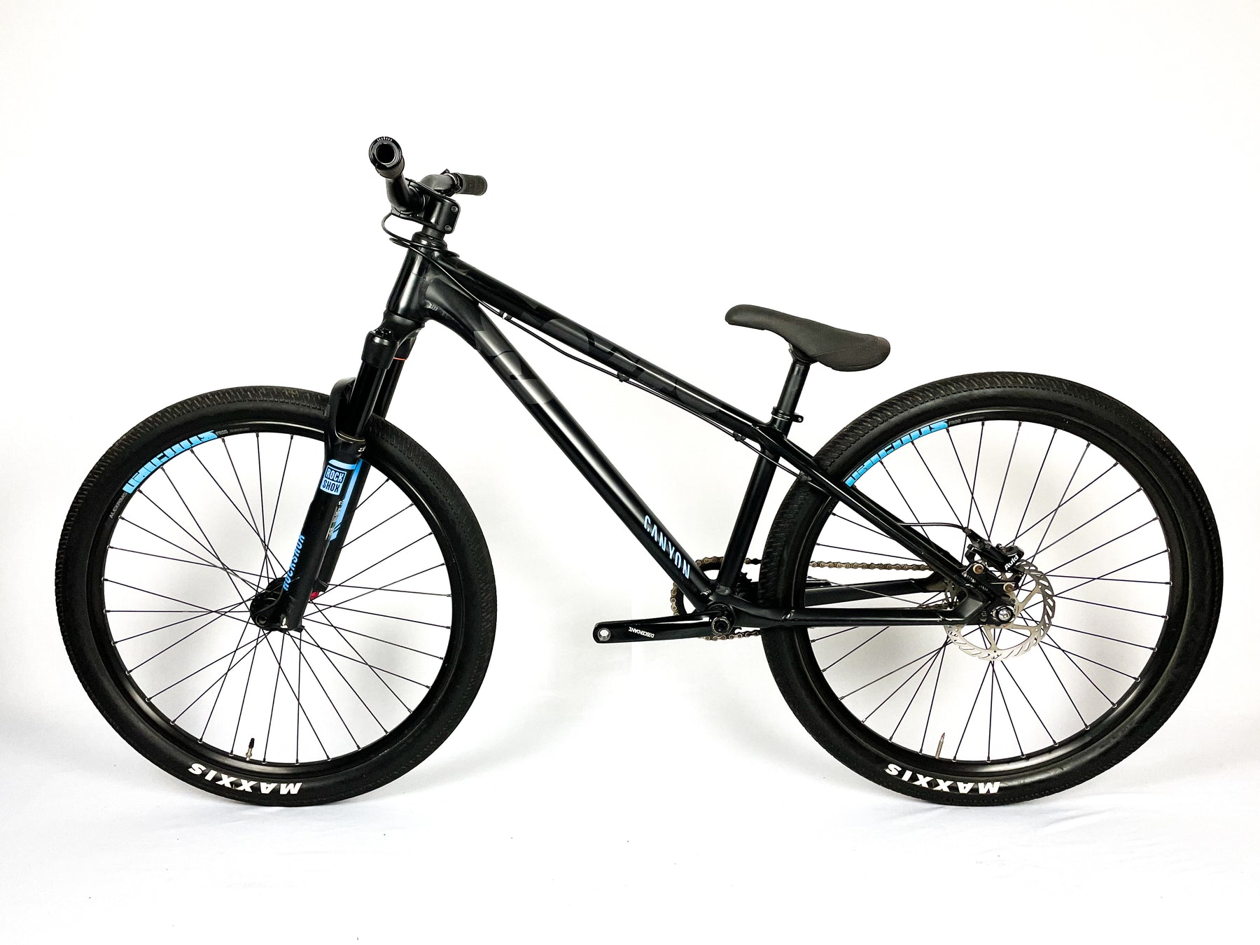 Tiene lo que necesitas para practicar dirt jumping. Un amortiguador Rockshox de 100mm Solo Air & Spring. Freno de disco rápido Avid. Llantas Maxxis.