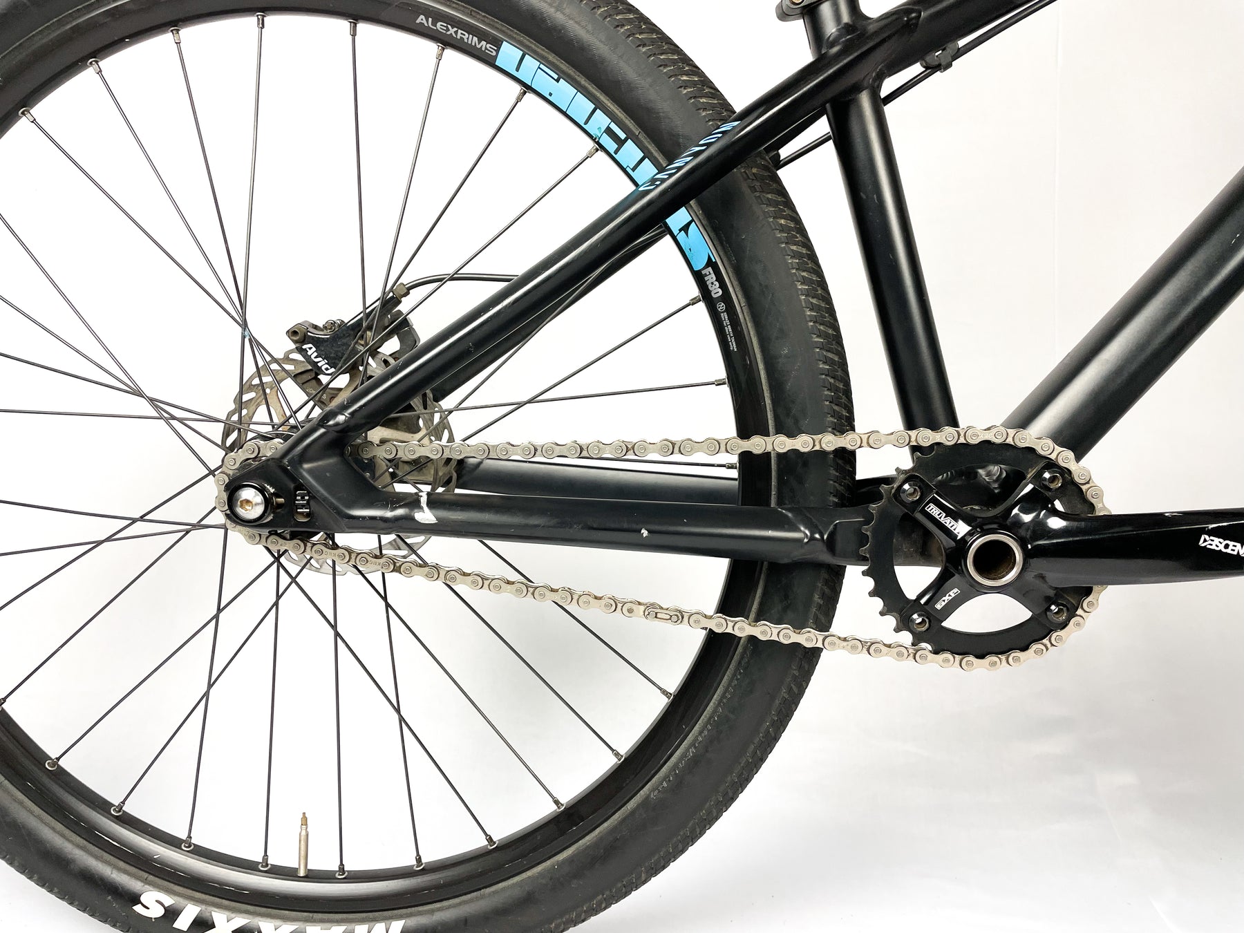 Una bicicleta de dirt unitalla. El cuadro es de aluminio. Tiene componentes Rockshox y freno Avid. Después de una detallada revisión, su calificación es de 9.77