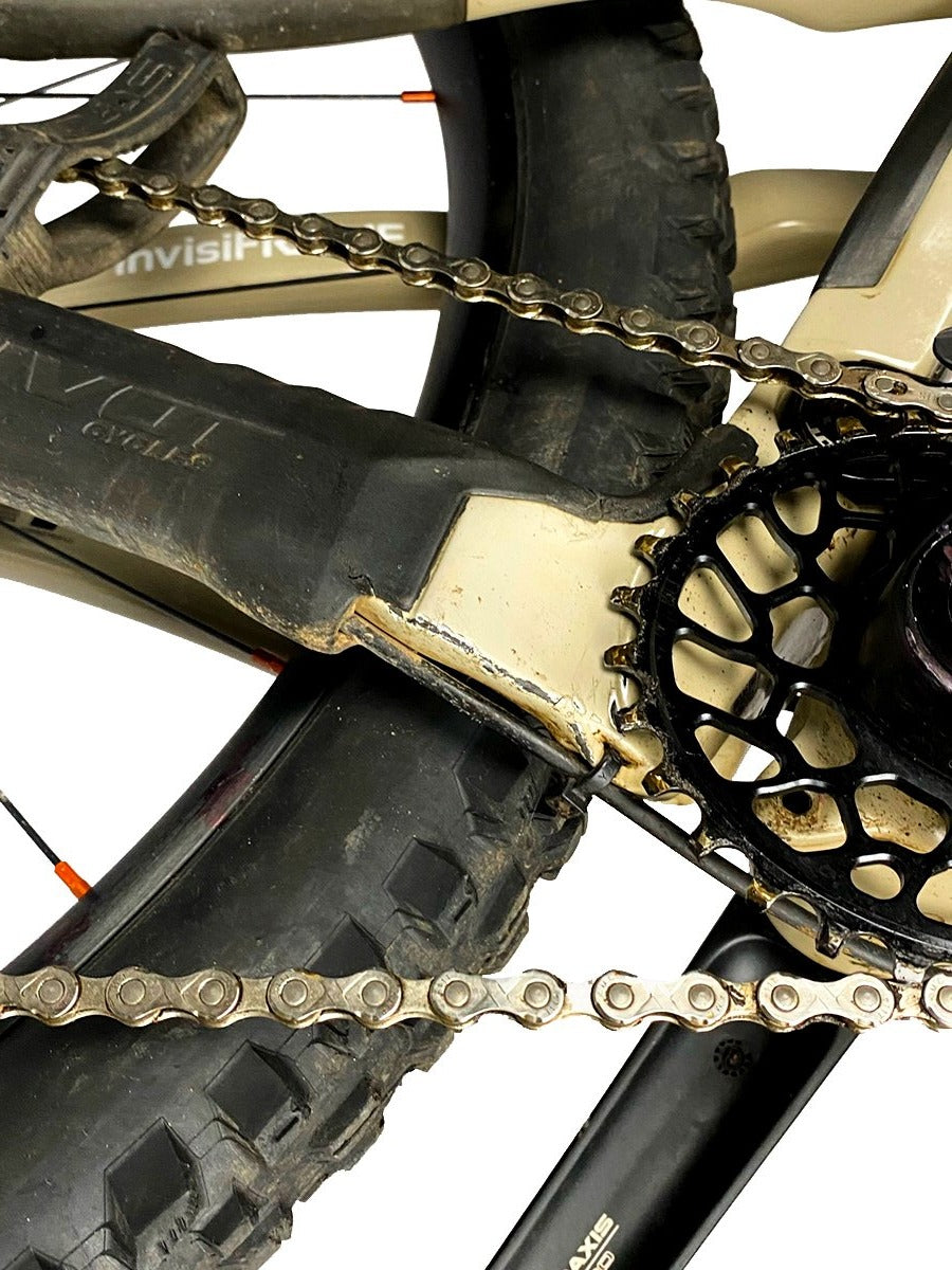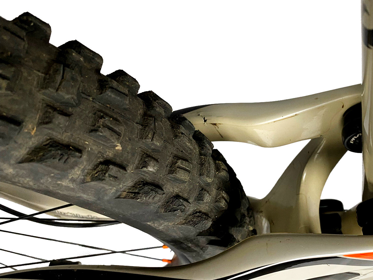 Componentes semi-nuevos de alta gamma. Los frenos Hope son reconocidos por ser buenos frenos dinámicos, duraderos, y rápidos. Los cambios Shimano XT son rápidos y duraderos. Tiene amortiguadores coil adelante y atrás. Tiene componentes que combinan en toda la bici (colores: bici beige, y componentes naranja y negro). Trae Cush Core adelante y atrás. Incluye un set (no instalado) de invisiFRAME específico para este modelo.