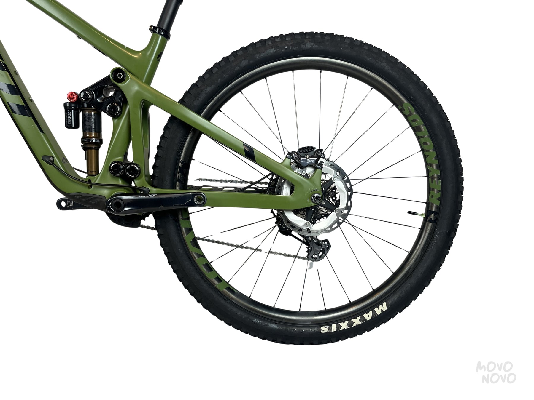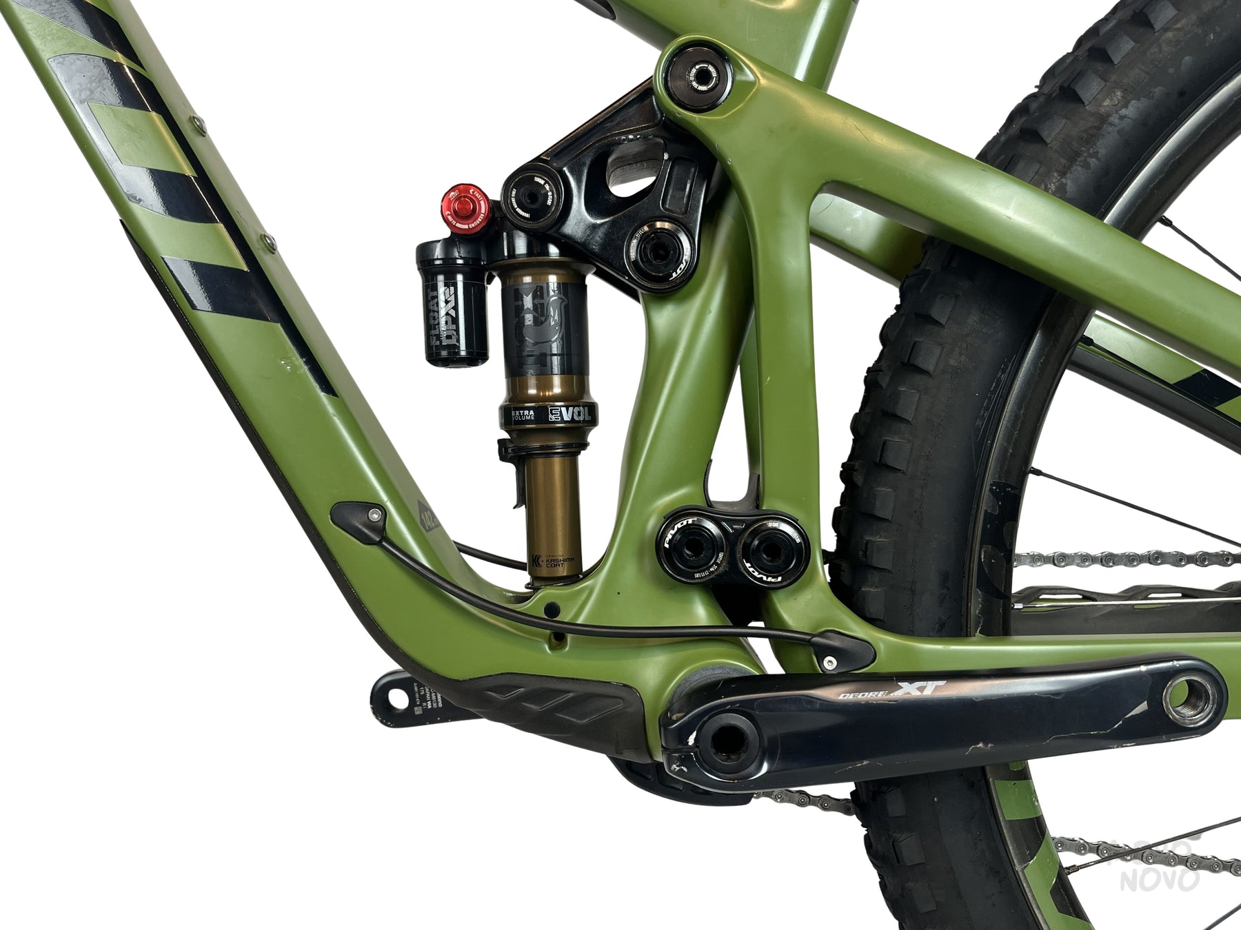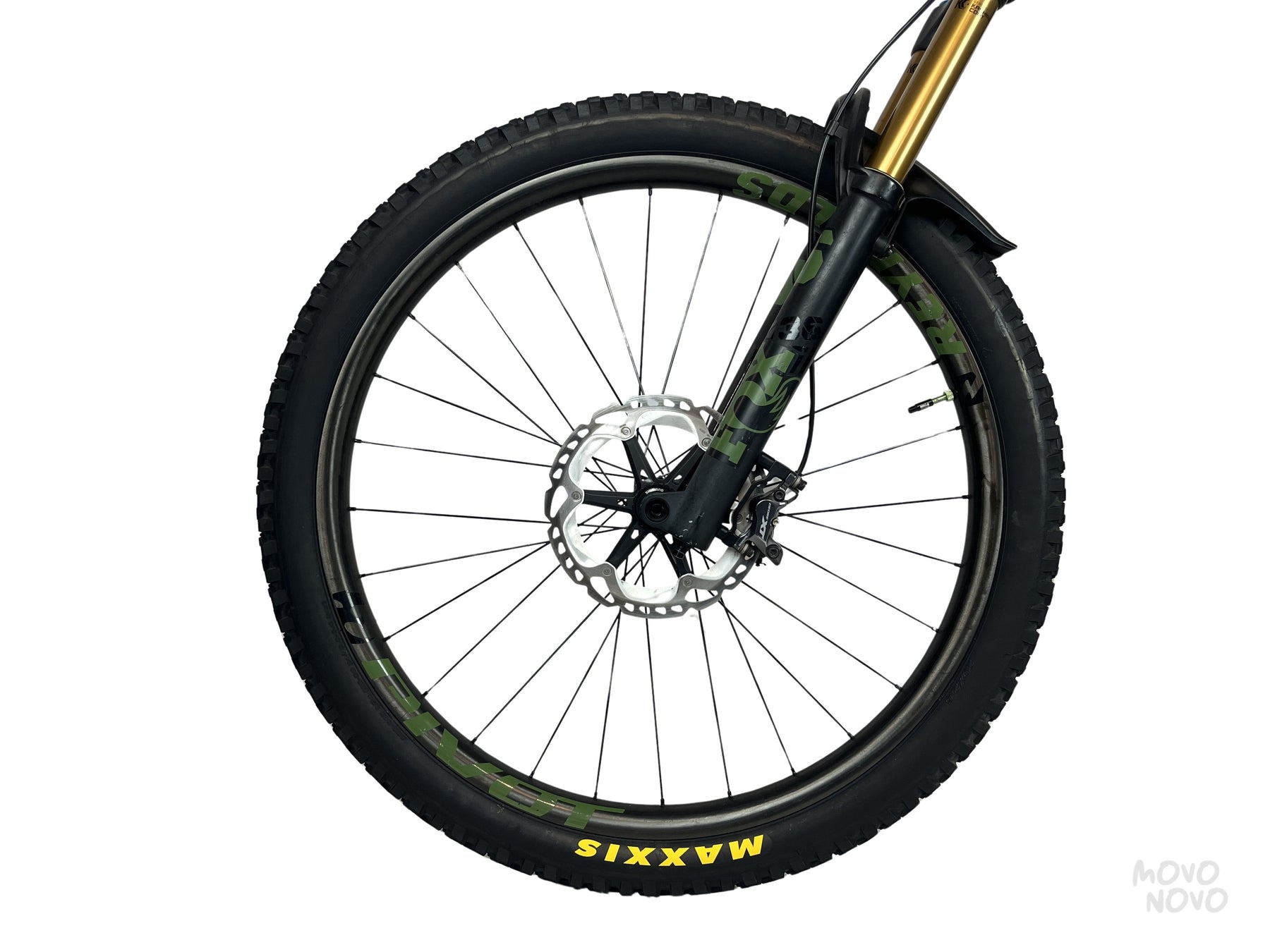 La bicicleta está equipada con componentes Shimano XT y XTR, suspensiones Fox 36 Factory y Float DPX2 factory, frenos Shimano XT y rines de carbono Reynolds