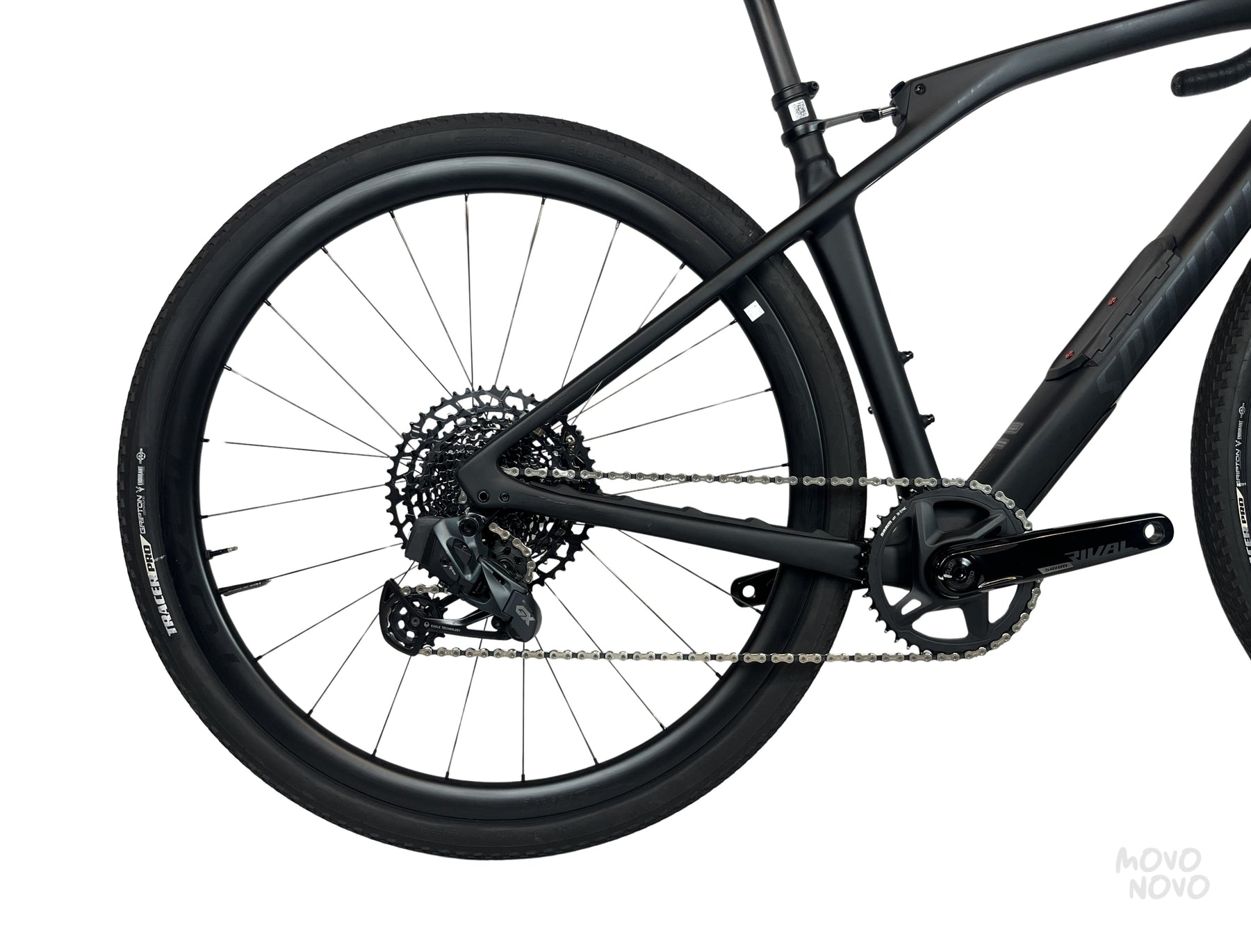 La bicicleta está equipada con una transmisión SRAM Rival/Gx 1x12, frenos Rival