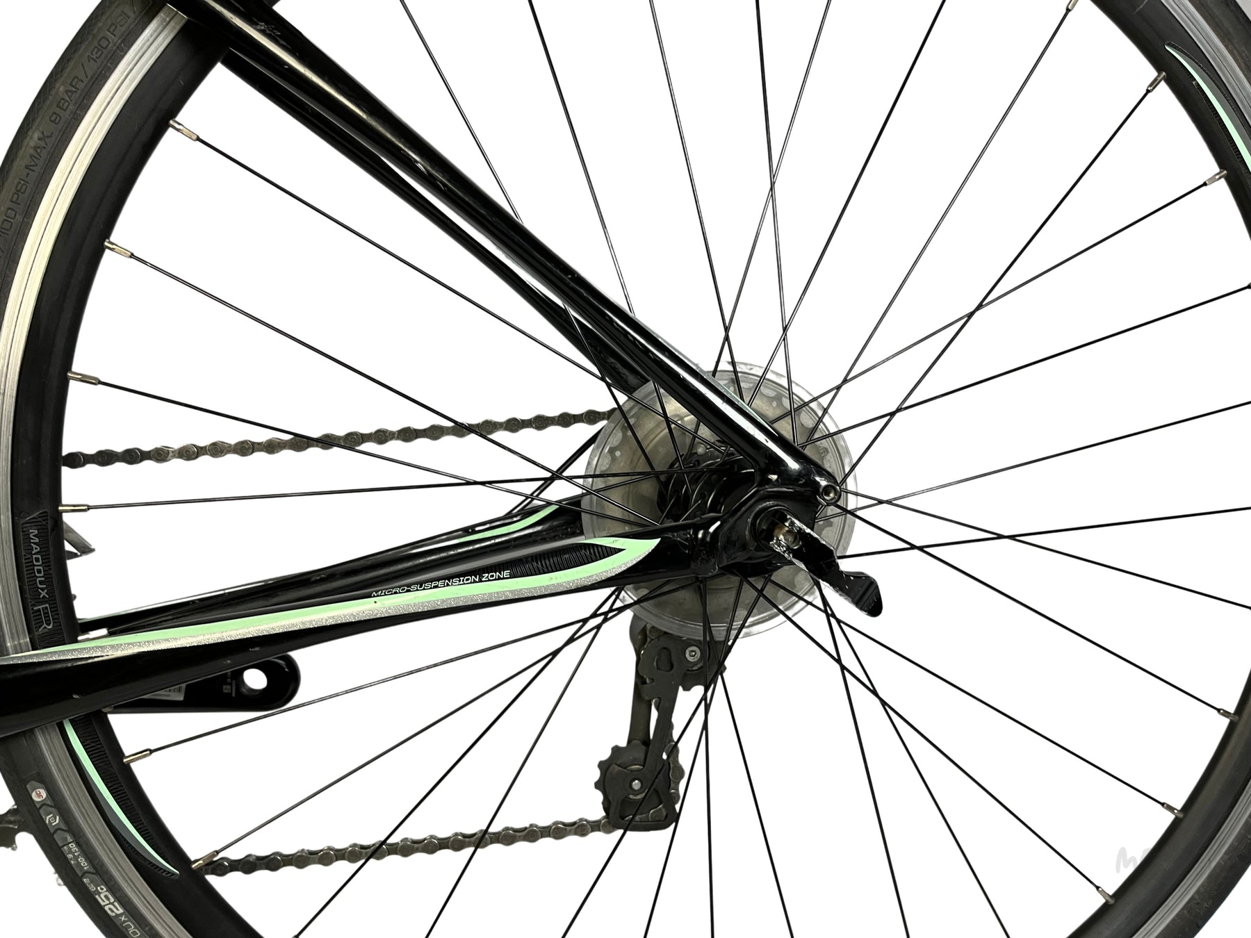 Una bicicleta de ruta talla 48. El cuadro es de aluminio. Pesa 10 kg. Tiene componentes Shimano Sora . Después de una detallada revisión, su calificación es de 8.82.