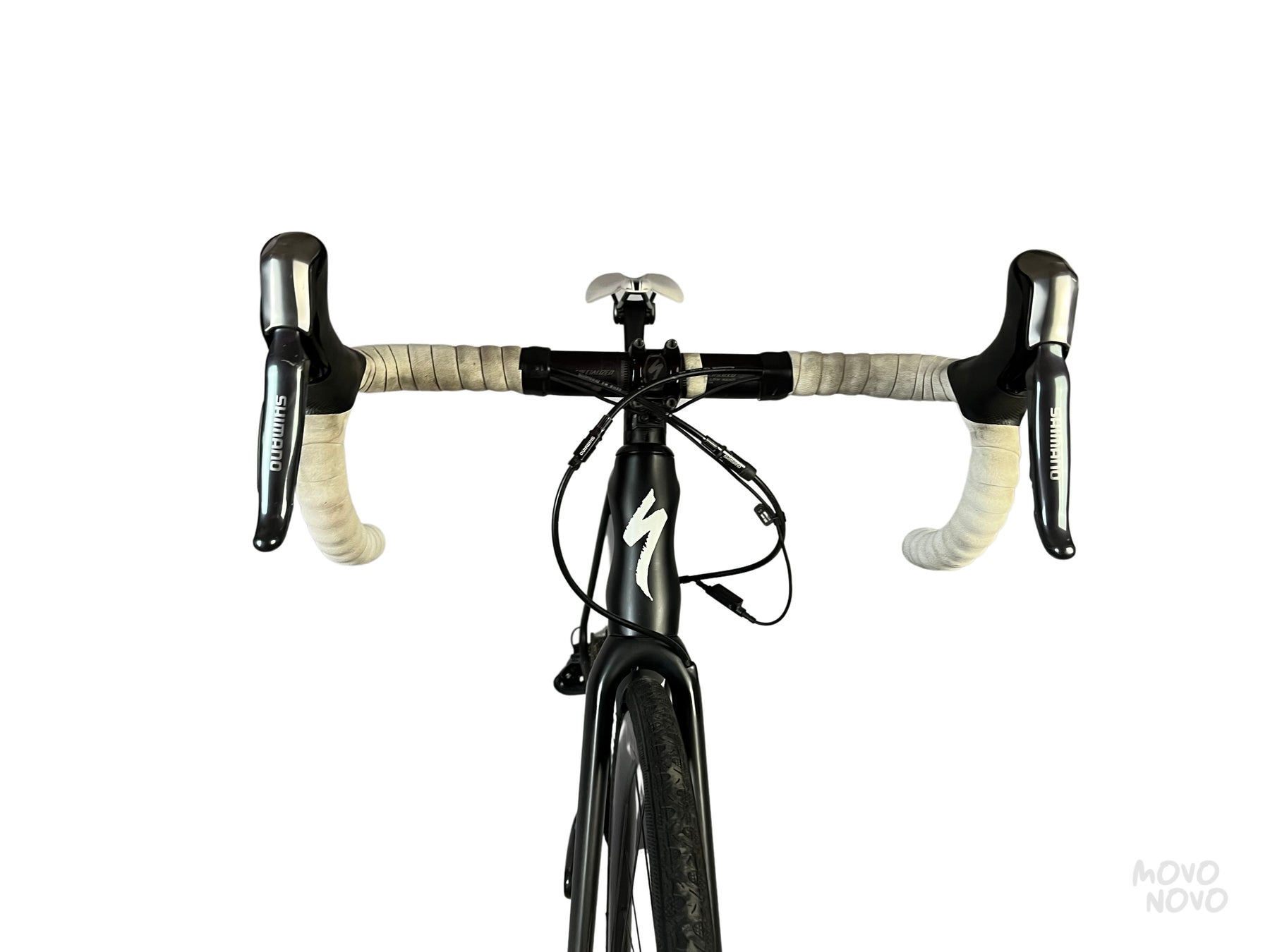 Una bicicleta de ruta talla 54. El cuadro es de carbón. Pesa 8 kg. Tiene componentes Shimano Ultegra . Después de una detallada revisión, su calificación es de 9.