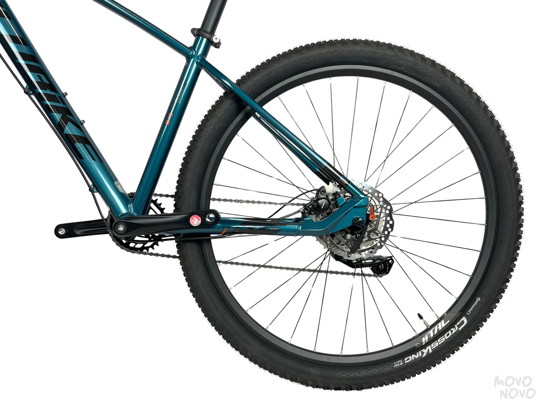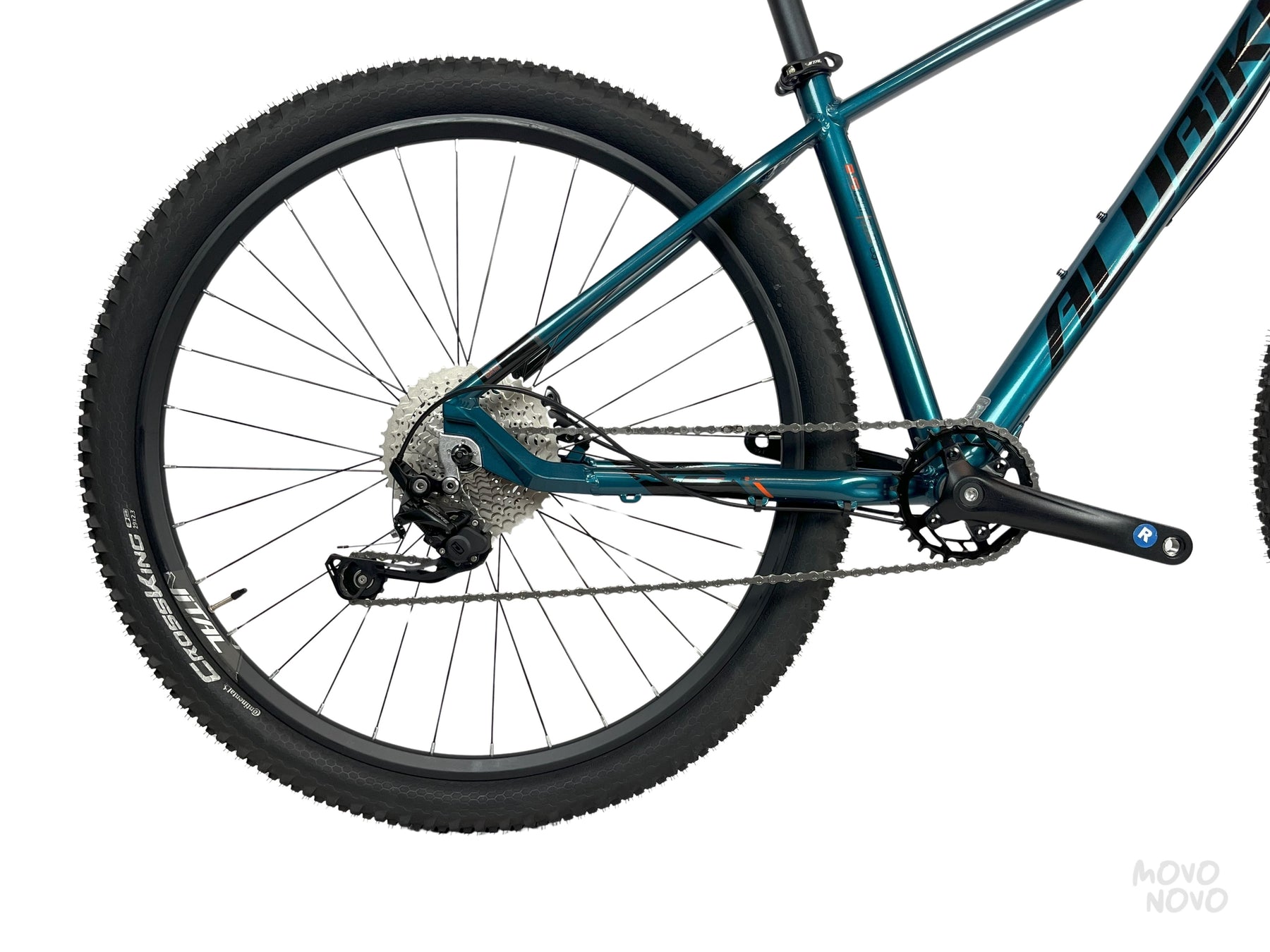 La bicicleta está equipada con una transmisión Shimano Deore de 10V, frenos Shimano MT200 y suspensión SR Suntour de 100mm de recorrido