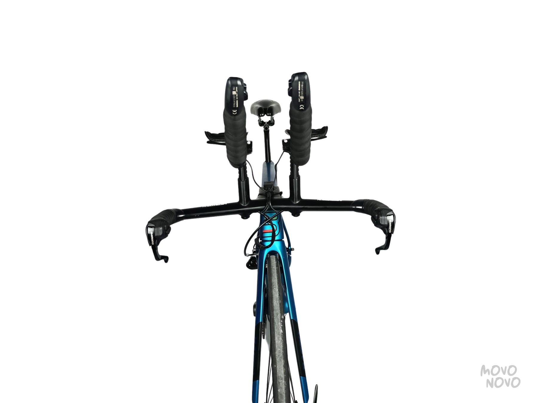Una bicicleta de triatlón talla M 54. El cuadro es de carbón. Pesa 9 kg. Tiene componentes Shimano Ultegra . Después de una detallada revisión, su calificación es de 9.
